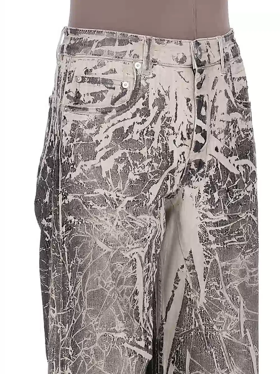 DENNA LÄTTA, TÄTTAD FOIL-DENIM ÄR TILLVERKAD PÅ EN 283 g SVART OCH NATURLIG STRETCH-DENIM. DET FÄRDIGA PLAGGET BLEKAS TILL EN SMUTSIGA PÄRLEFÄRG, ETT SVART FOLIEÖVERLÄGG APPLICERAS SEDAN OCH SLUTLIGEN TVÄTTAS PLAGGET FÖR ATT UPPNÅ DET OREGELBUNDNA UTSEENDE.