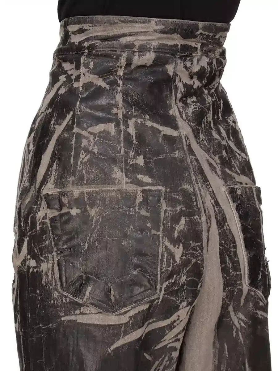 DENNA DIRT BOLAN HAR EXTREM HÖG MIDJA OCH GOLFLÅNG KÄNGSKORNING. DE HAR EN MINIMAL MIDJEBAND MED DRAGKEDJA I MITTEN FRAM, SIDSÖMMAR OCH PANORAMADE FICKOR BAK.