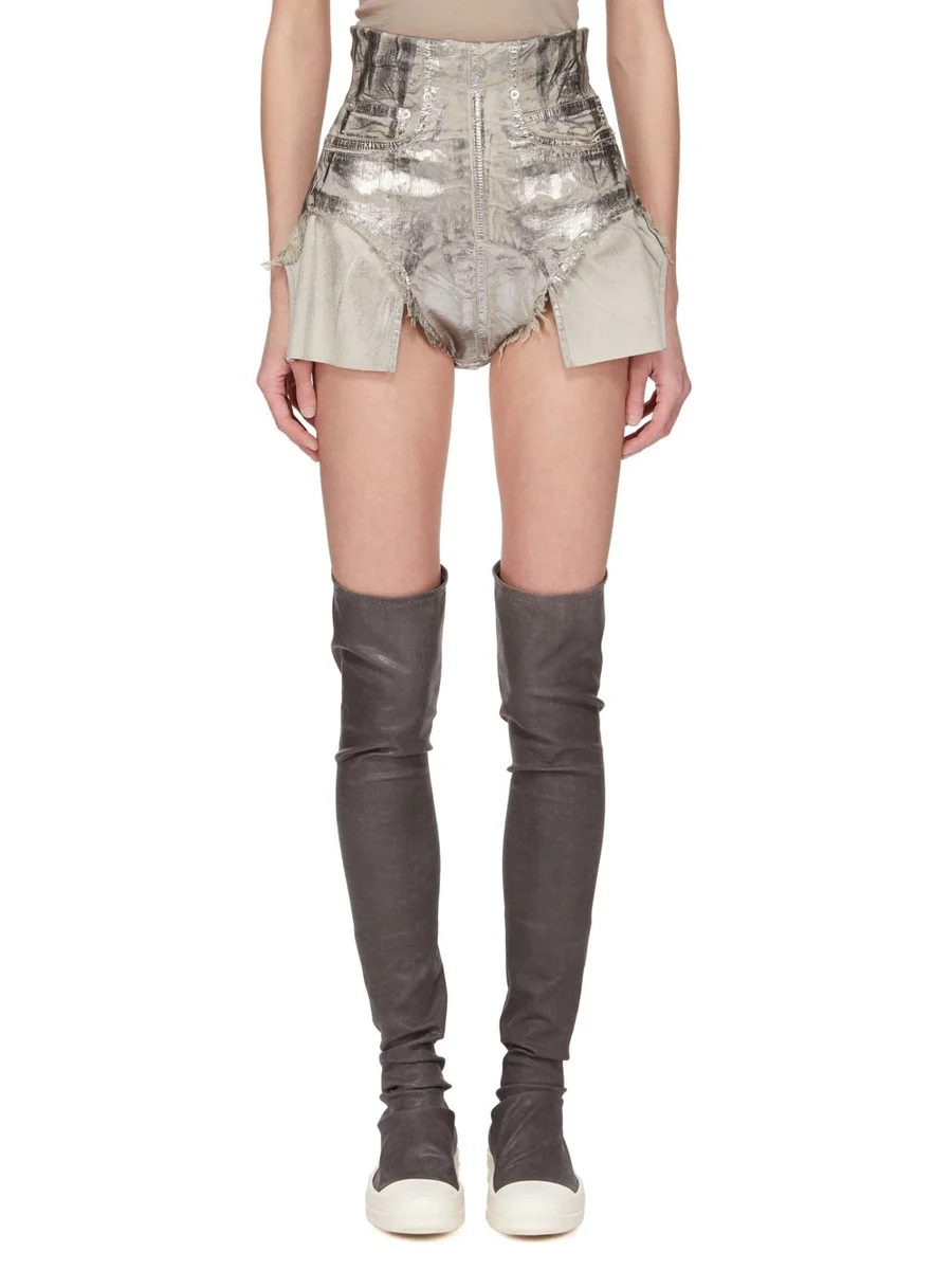 DRKSHDW FW25 CONCORDIANS DIRT CUTOFFS I PALLADIUM FOIL STRETCH DENIM