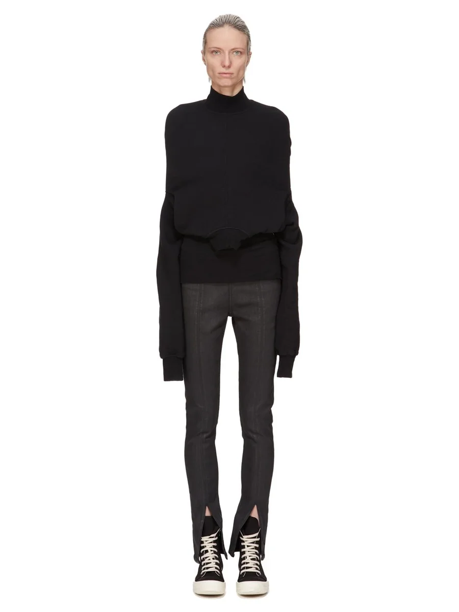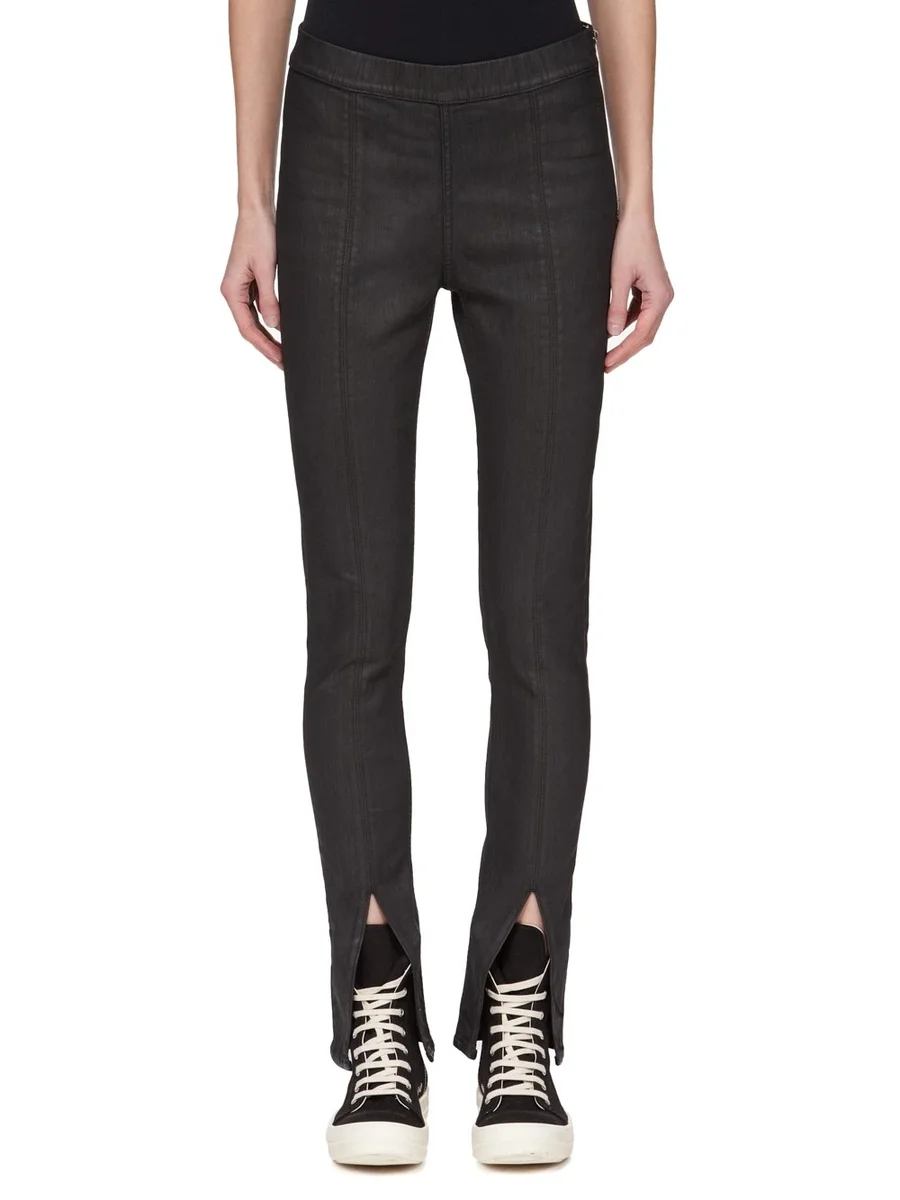 DRKSHDW FW25 CONCORDIANS LEGGINGS MED SLIT FRAM I SVART VAXAD STRETCHDENIM