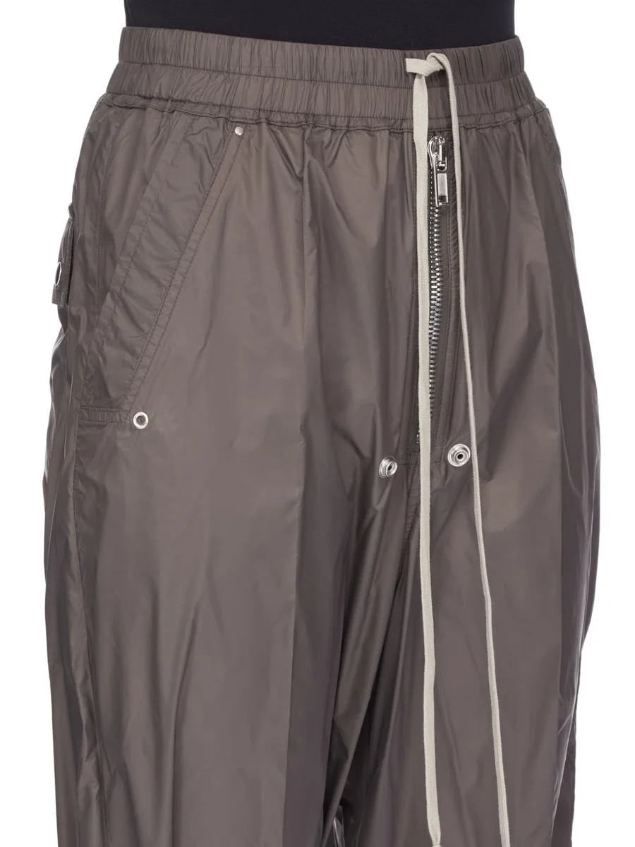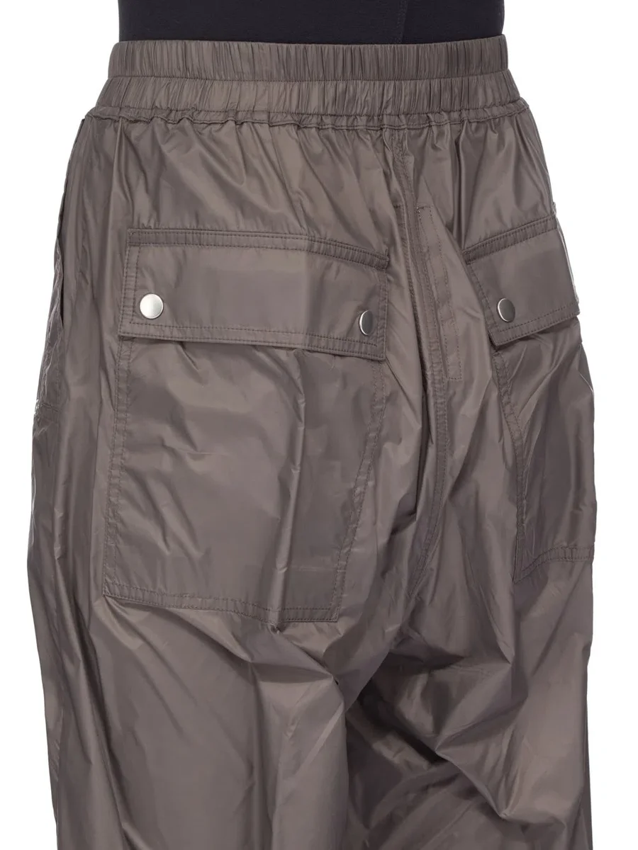DESSA GETH BELA-BYXOR ÄR FULL LÅNGA MED LÅG GREN OCH VID BEN. DE HAR RESÅR I MIDJAN MED VERTIKALA SÖMNINGAR OCH DRAGSKNÄPP SAMT EN SYND BELA-DRAGKEDJA I MITTEN MED TVÅ KNÄPPDETALJER NEDST. DE HAR SIDOFICKOR MED ÖGLÅSOR OCH NITDETALJER OCH BAKSIDFICKOR MED KLAFFA OCH SYNLIGA KNÄPP.
