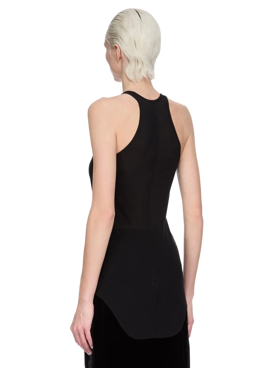 RICK OWENS FW25 CONCORDIANS BASIC RIB TANK I TVÄTTAD SVART VISKOS-SILKE-JERSEY