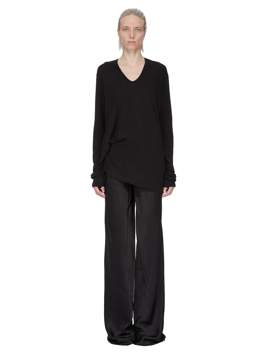 RICK OWENS FW25 CONCORDIANS SKINNBYXOR MED DRAGSNÖR I SVART, TÄTTAD CHARMEUSE