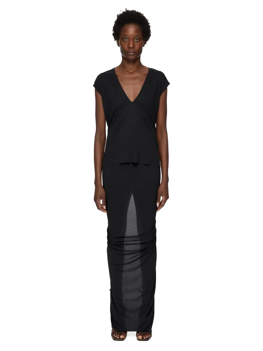 RICK OWENS LILIES FW25 CONCORDIANS EVA-KJOL I SVART VISKOSCREPÉJERSEY