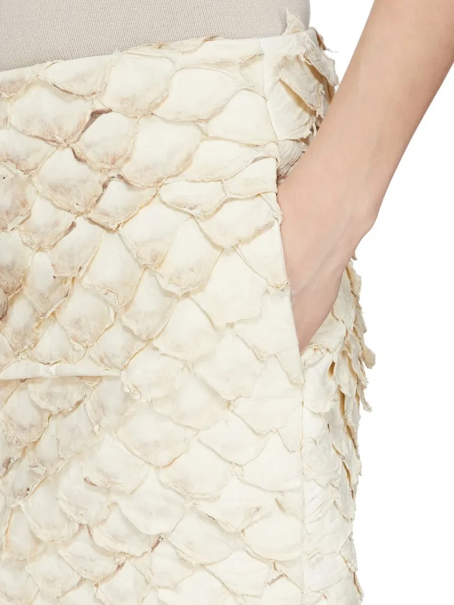 RICK OWENS FW25 CONCORDIANS RUNWAY SLICED KJOL I NATURLIG VAXIG PIRARUCU