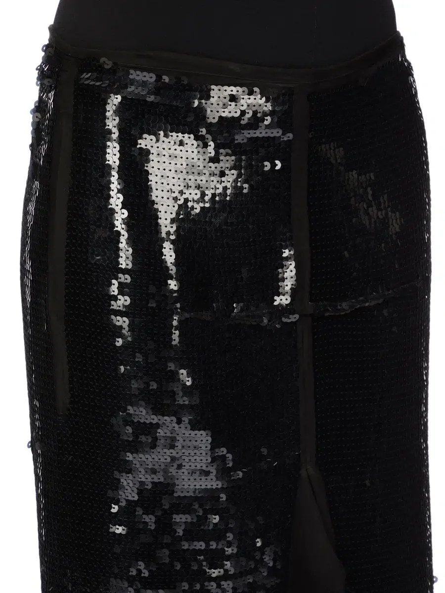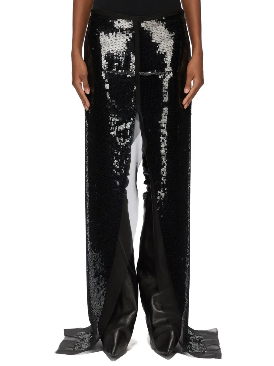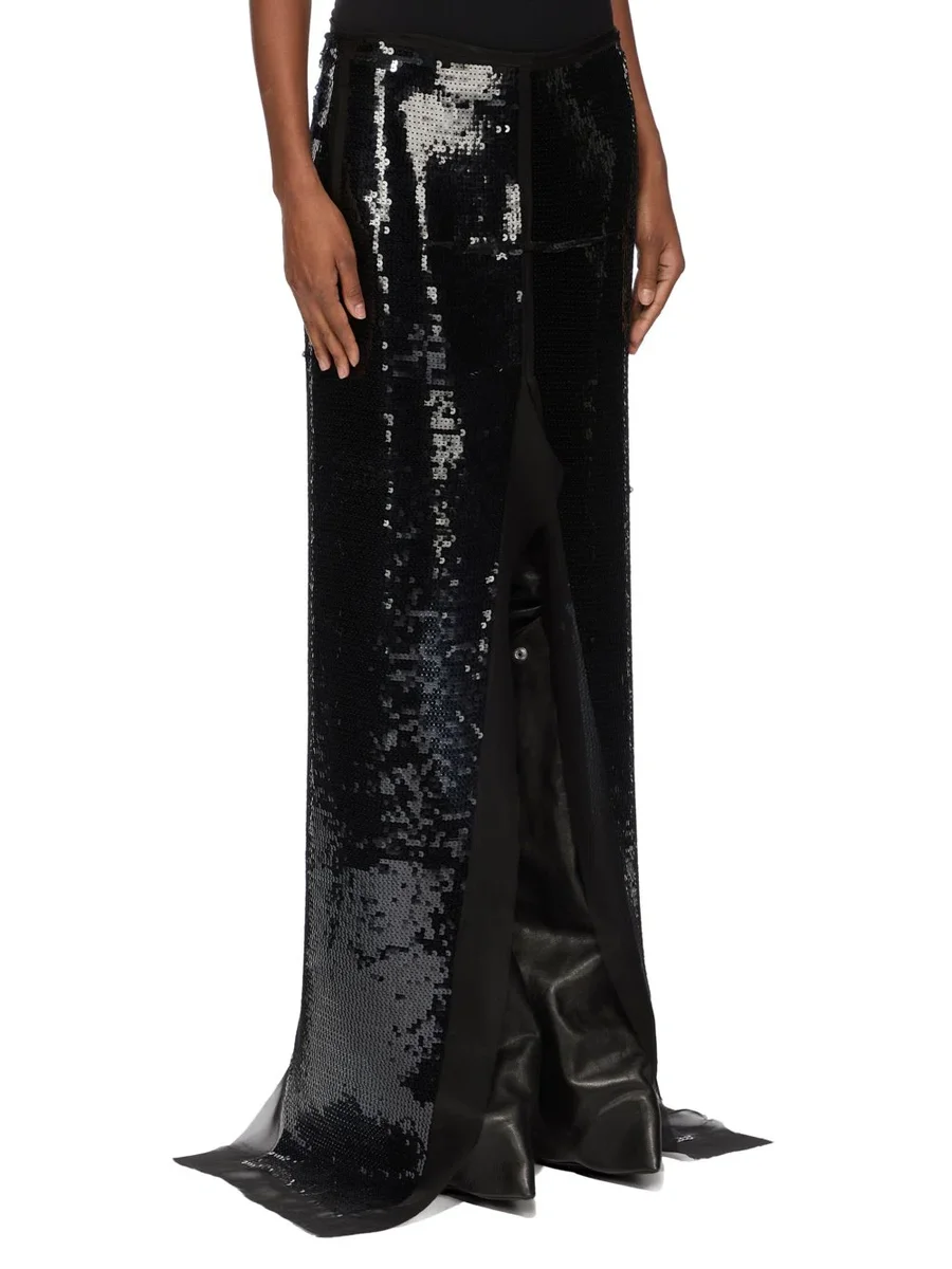 RICK OWENS FW25 CONCORDIANS CATWAY SLICED KJOL I SVART BRODERAD SILKESCHIFFONG