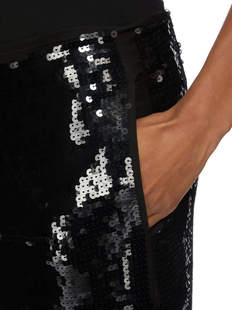 DEN ÄR BRODERAD MED SMÅ PALJETTSKIVOR AV PALJETTER OCH ÄR VÄVD I COMO-REGIONEN I ITALIEN, KÄND FÖR SITT ARV AV SILKEPRODUKTION.