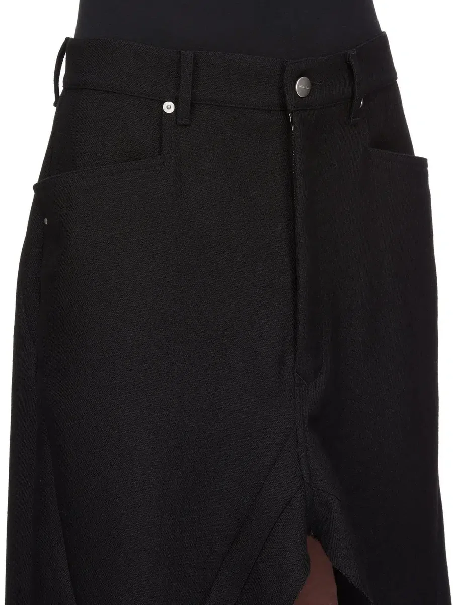 RICK OWENS FW25 CONCORDIANS LÅNG RIBBACK KJOL I SVART ULLDRILL
