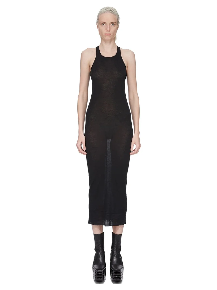 RICK OWENS FOREVER-KLÄNNING I SVART MINI RIB JERSEY.