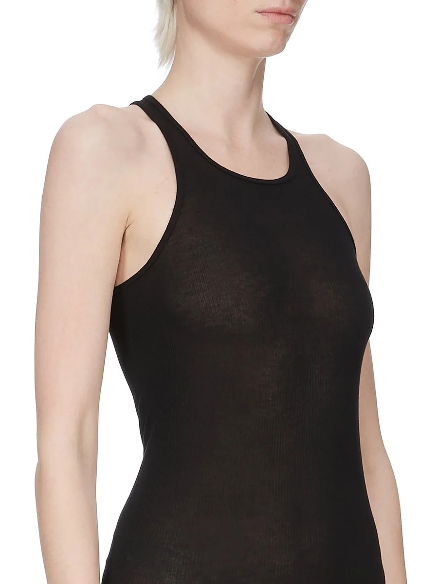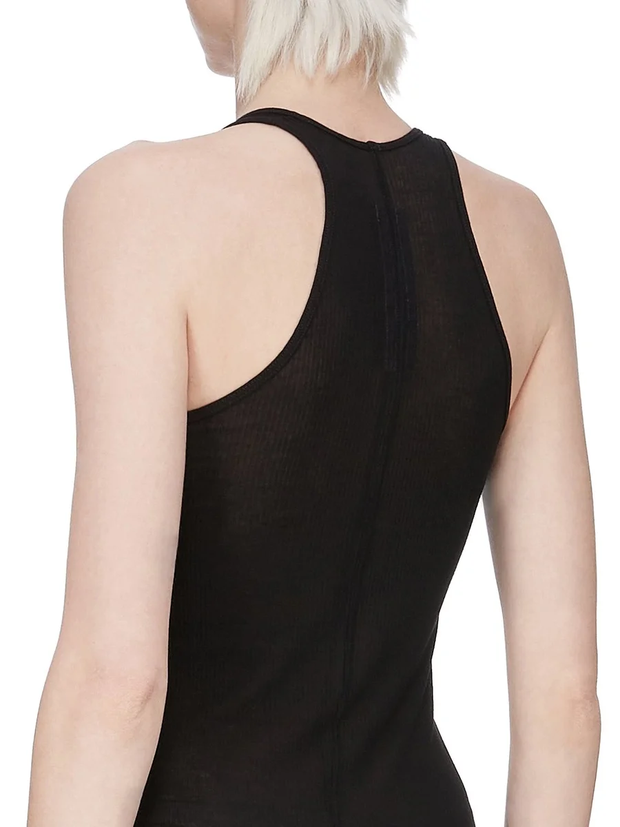 RICK OWENS FOREVER-LINNEKLÄNNING I SVART VISKOS- OCH SILKEDRESSEY.