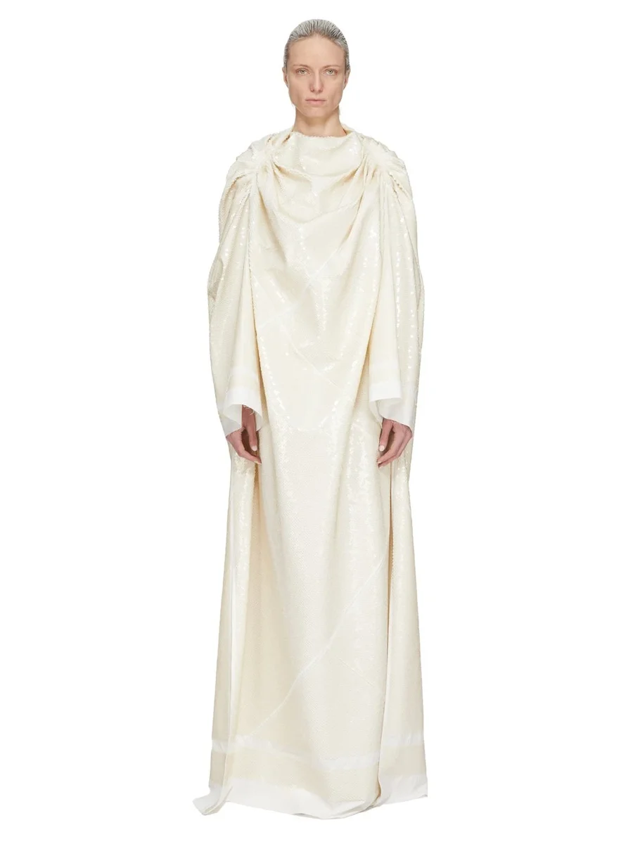 RICK OWENS FW25 CONCORDIANS CLAUDETTE-KLÄNNING I MJÖLKBRODERAD BOMULLSPOPLIN