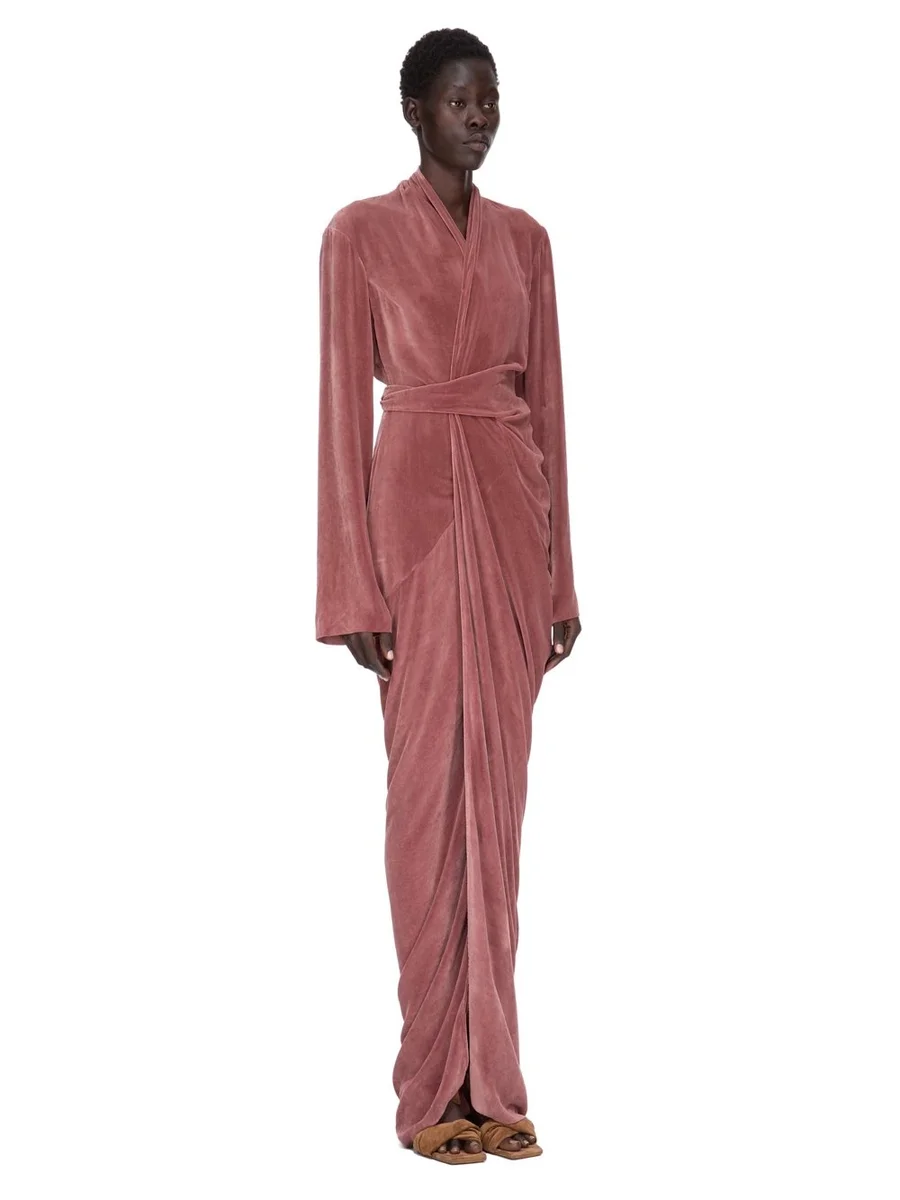 RICK OWENS FW25 CONCORDIANLÅNG OMLOTTKLÄNNING I ROSENTRÄSAMT