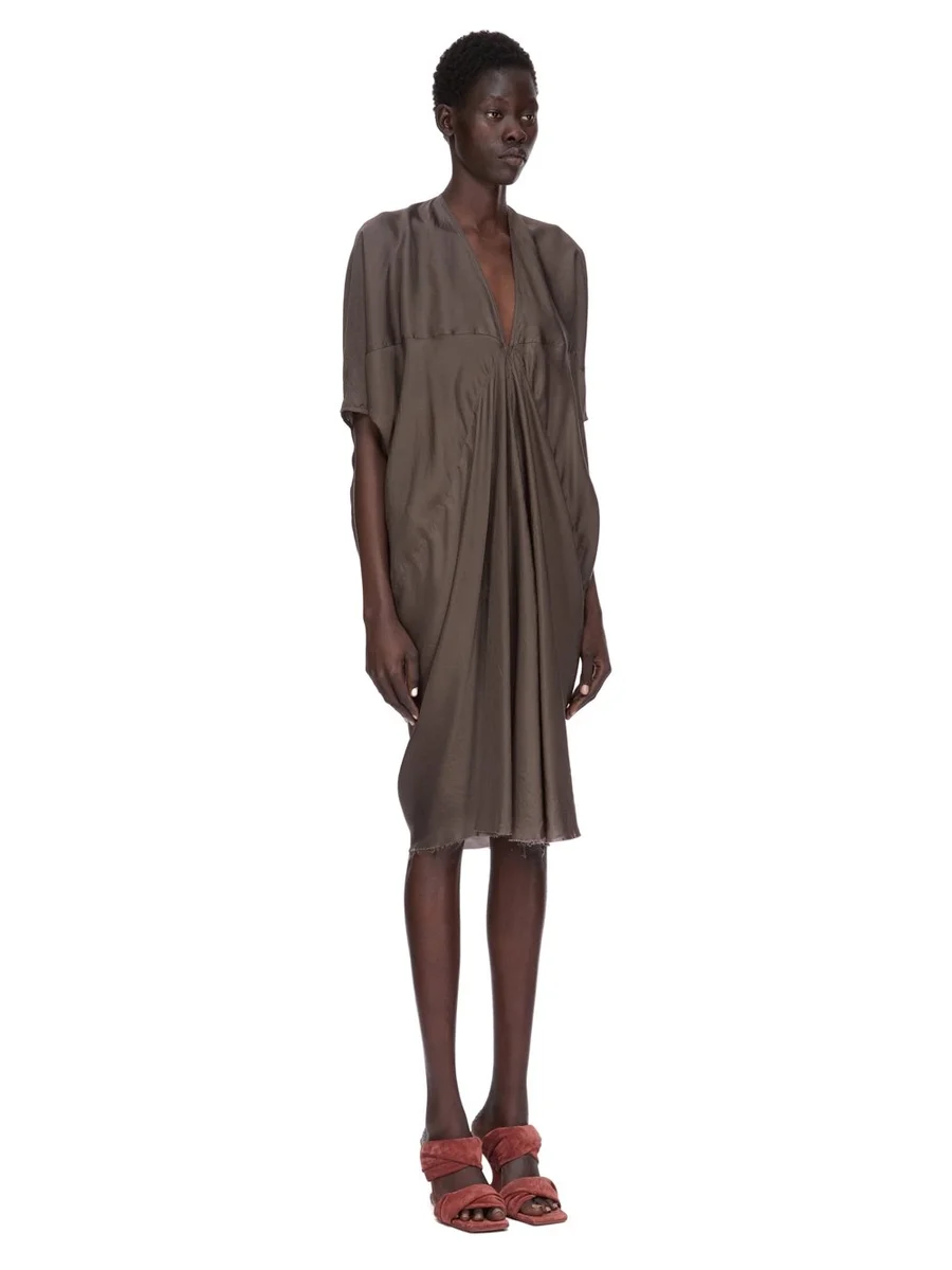 RICK OWENS FW25 CONCORDIANSKITEKLÄNNING I DARKDUST CUPRO TWILL