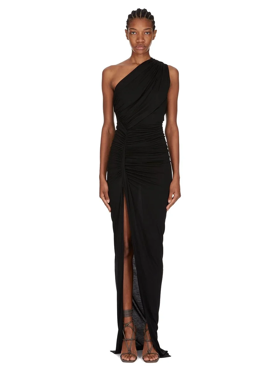 RICK OWENS LILIES FW25 CONCORDIANS AVRA-KLÄNNING I SVART, FLUID VISKOSJERSEY