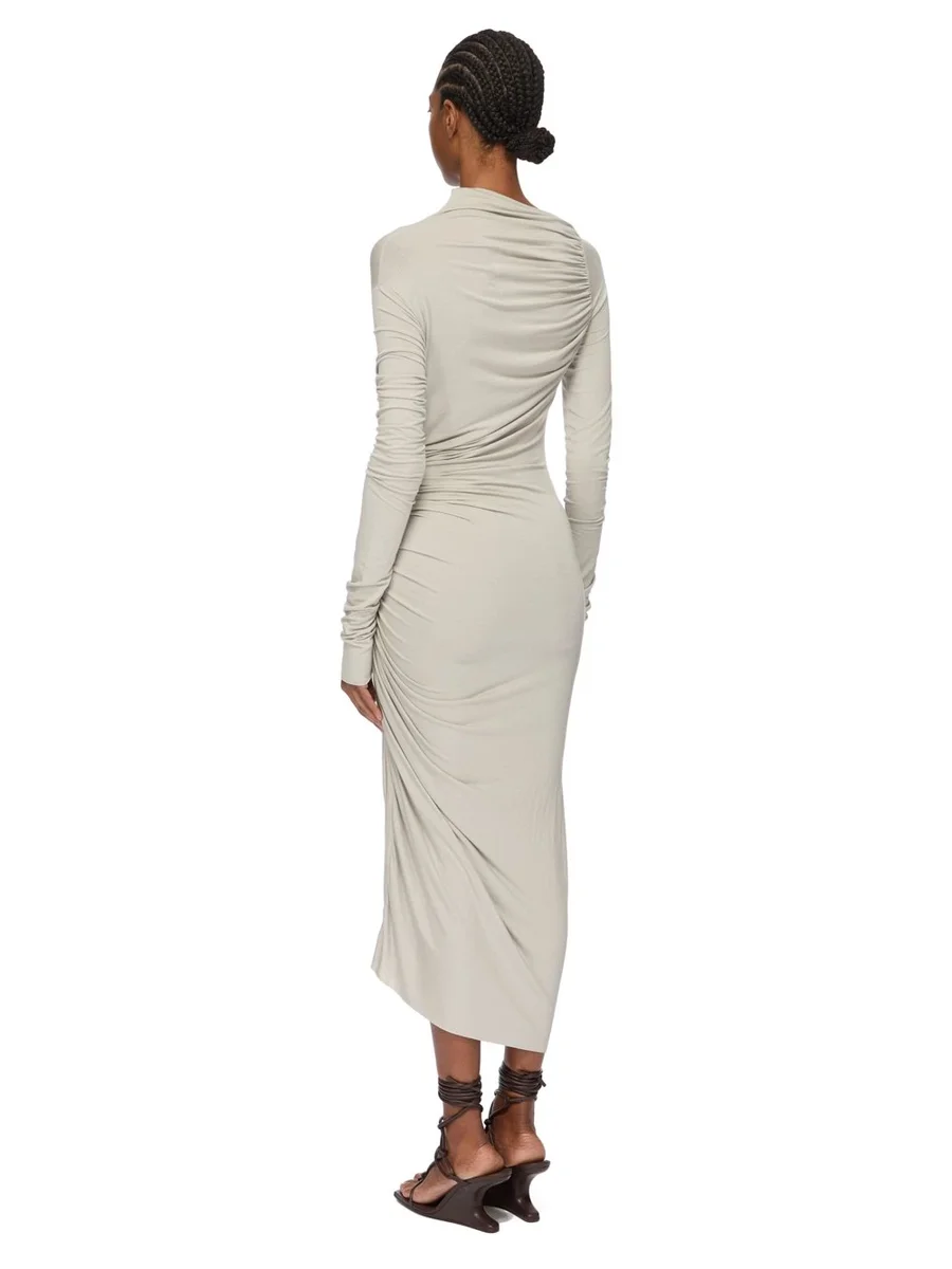 RICK OWENS FW25 CONCORDIANS SVITA LS KLÄNNING I PÄRLSATINSATIN VISKOSEJERSEY
