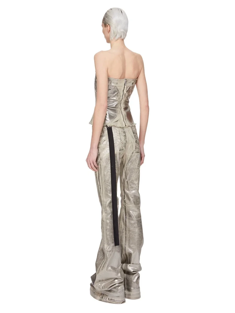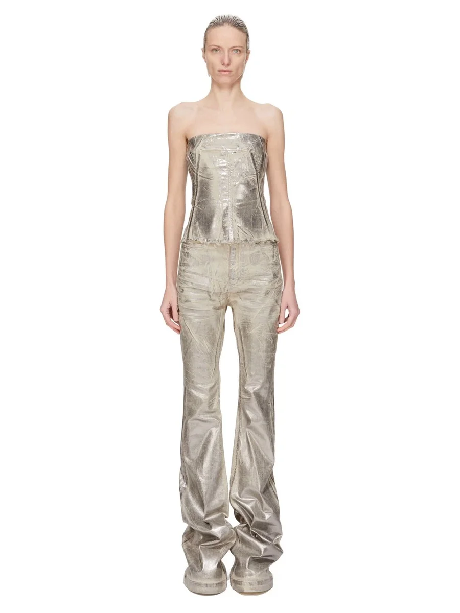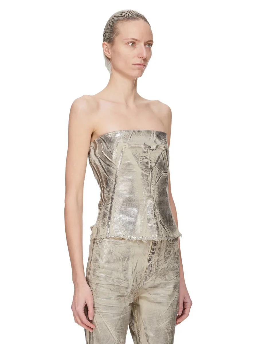 DRKSHDW FW25 CONCORDIANS BUSTIER-TOPP I PALLADIUM FOIL STRETCH DENIM