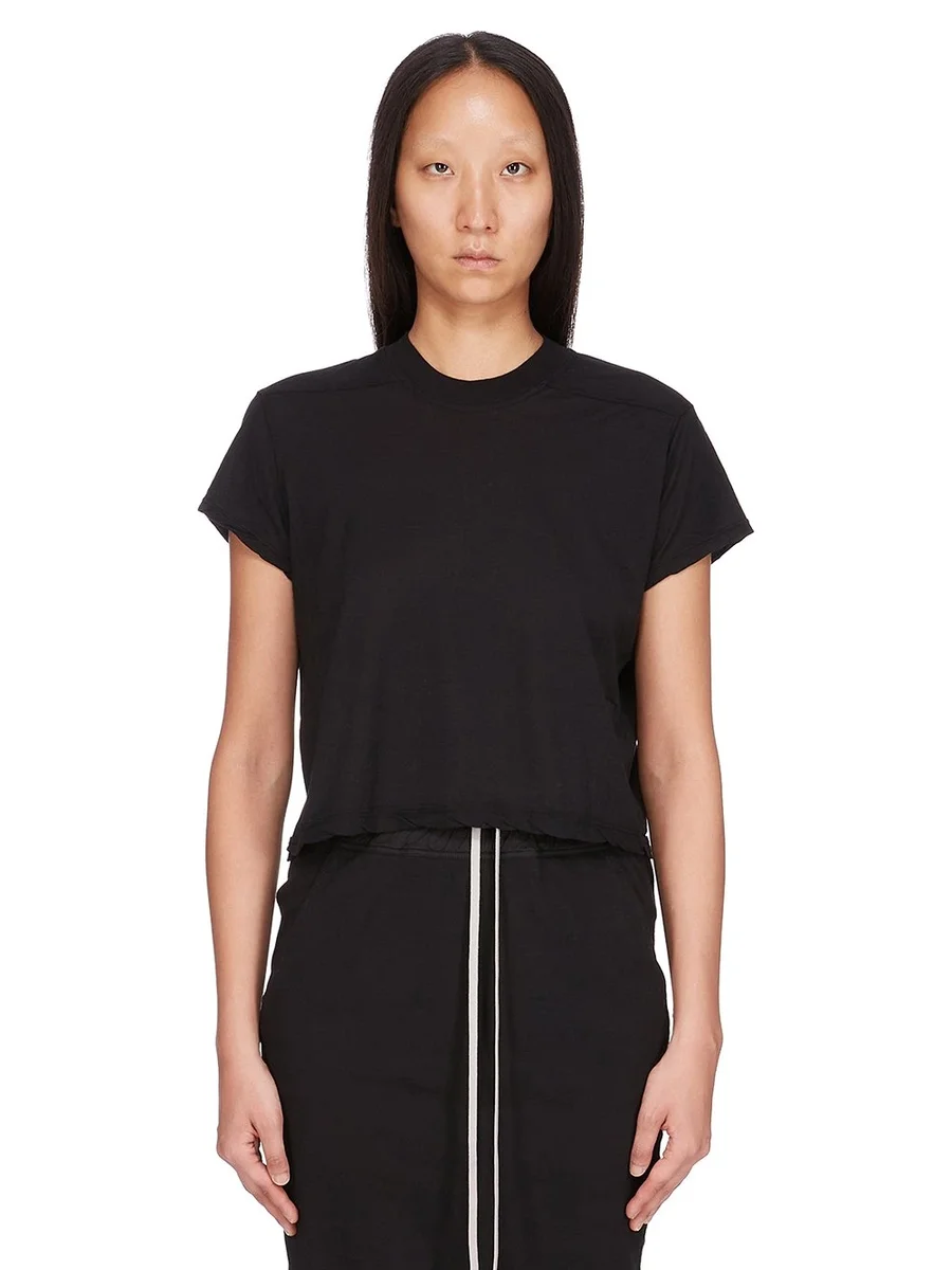 DRKSHDW FW25 CONCORDIANS BESKRIVNA SMALL LEVEL T-SHIRTS I SVART BOMULLSGAUZE-JERSEY