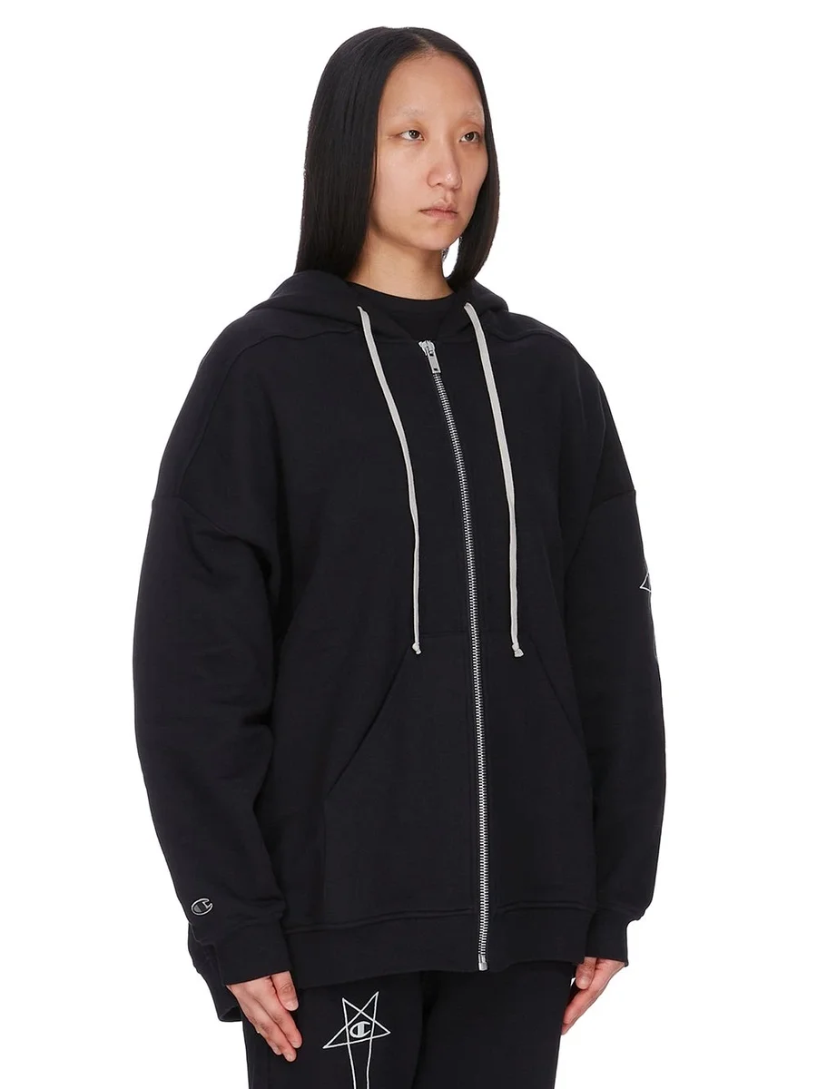 CHAMPION X RICK OWENS SS25 JUMBO JASON’S HOODIE I SVART KOMPAKT FELPA-TRÖJA
