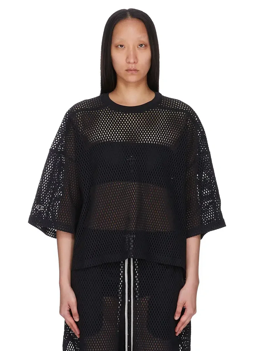 CHAMPION X RICK OWENS SS25 TOMMY T-TRÖJA I SVART ÖPPEN MESH-TRÖJA