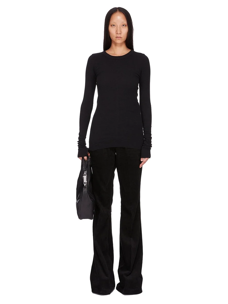 RICK OWENS FW25 CONCORDIANS RIB LS T-SHIRT I SVART RAININO RIB JERSEY