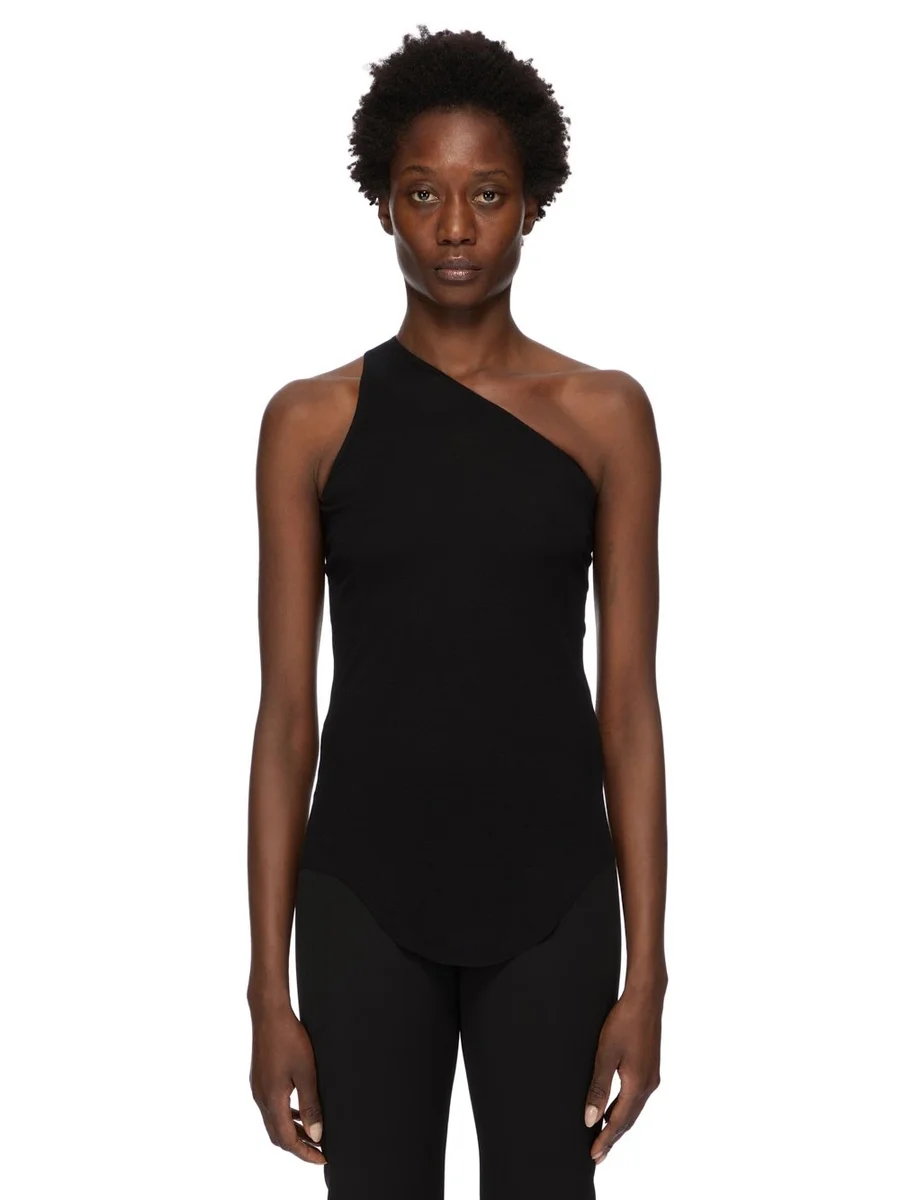 RICK OWENS FW25 CONCORDIANS SAHARA-TOPP I SVART, FLUID VISKOSJERSEY
