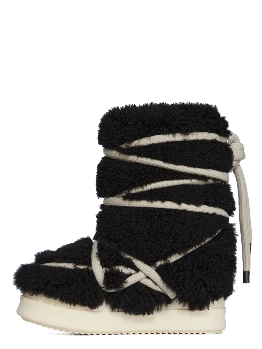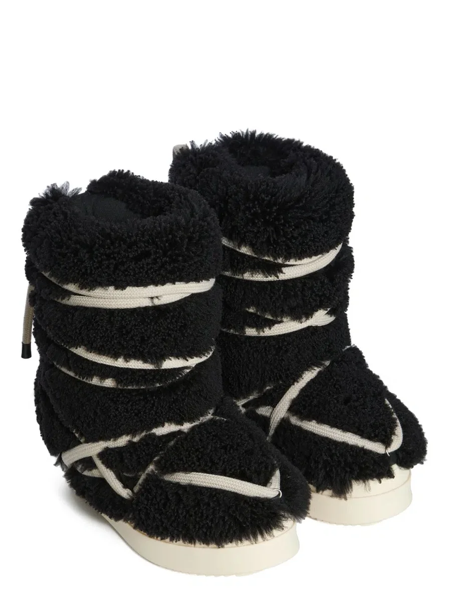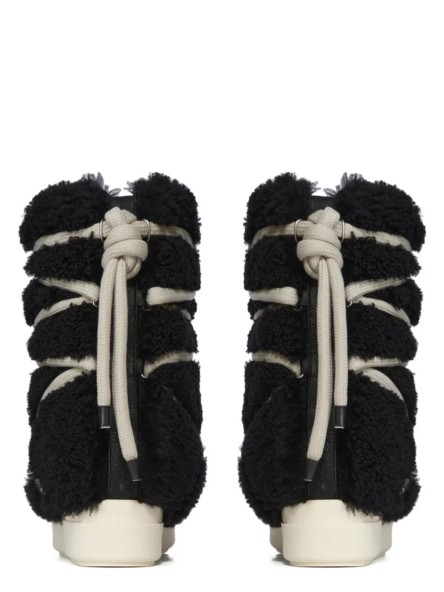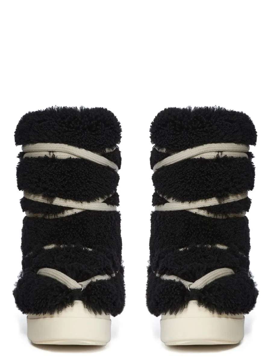RICK OWENS FW25 CONCORDIANSMEGA BUMPER LUNAR I SVART/MJÖLKLOCKIG SHEARLING