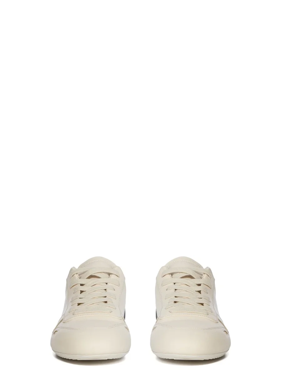 RICK OWENS FW25 CONCORDIANS MINIMAL SNEAK I MJÖLK/SVART/MJÖLKIG FULLGRAIN COW LEATHER
