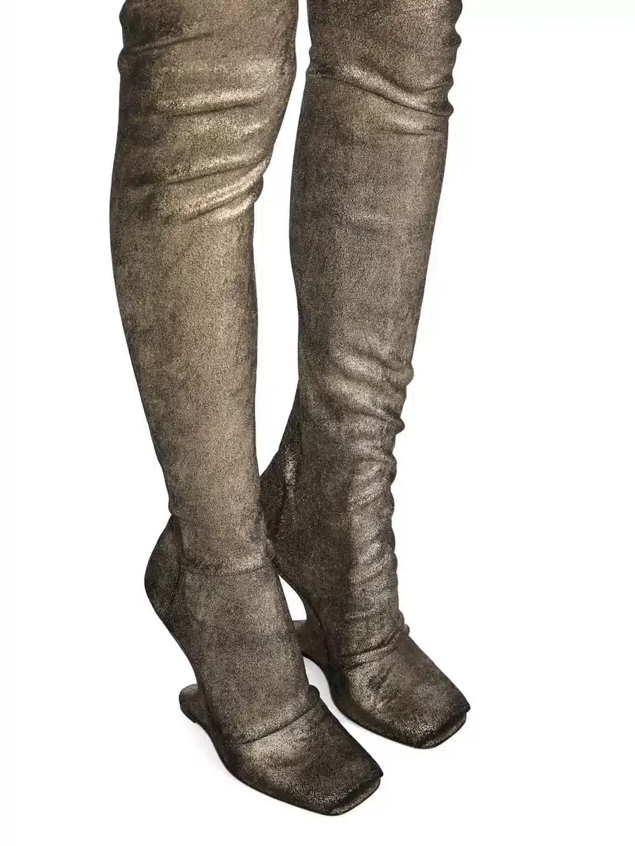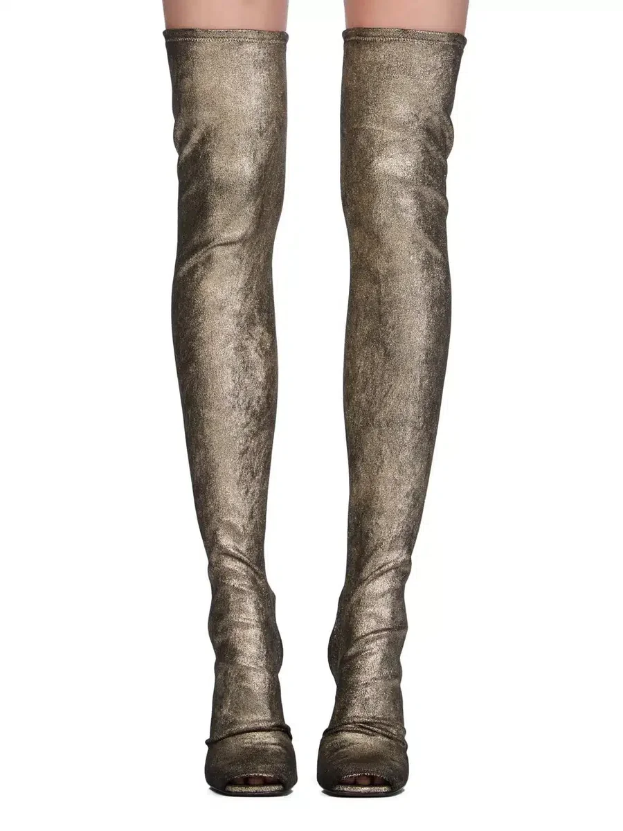 RICK OWENS FW25 CONCORDIANS CANTILEVER 11 STÖVEL I GULDMETALLISKT STRETCHLAMMLÄDER