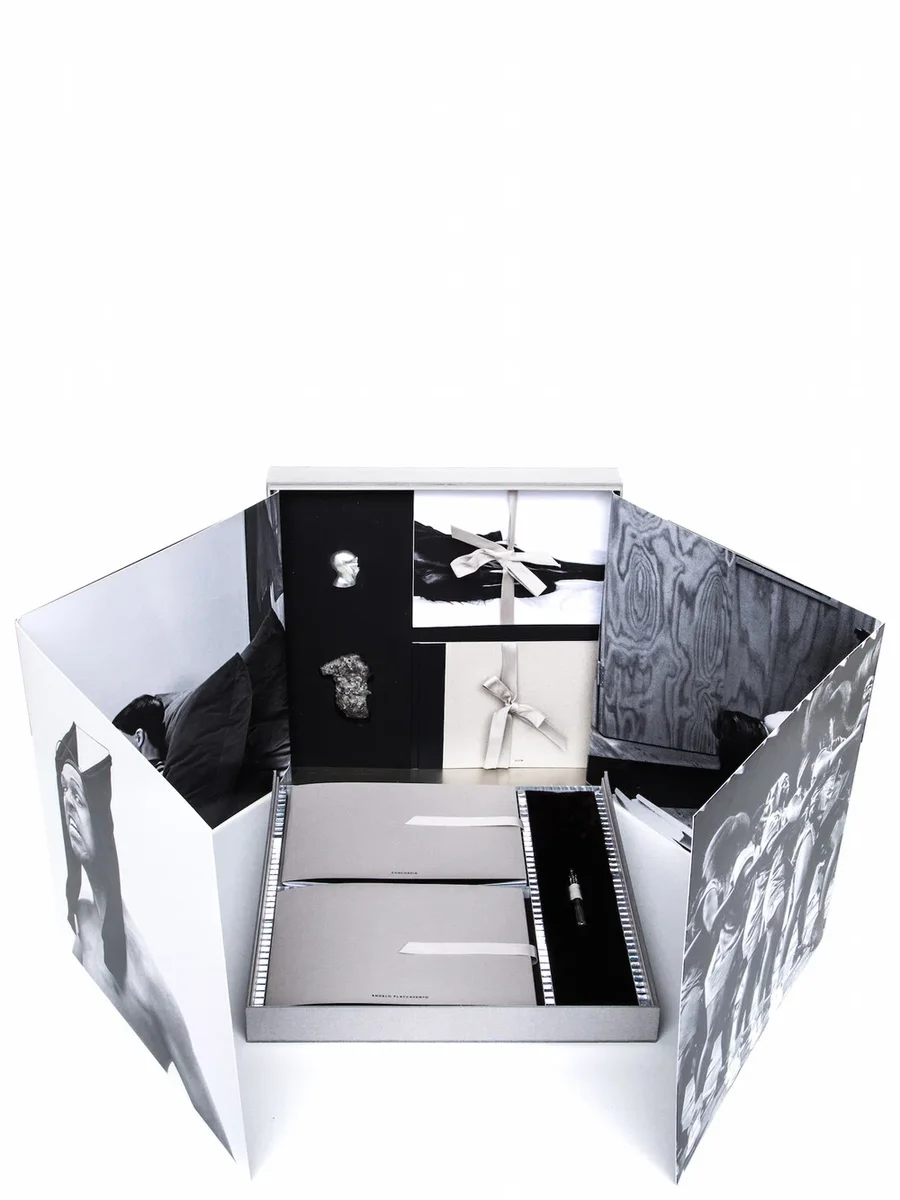 BOXEN INNEHÅLLER EXKLUSIVA FÖREMÅL/SKULPTURER OCH TRYCKT MATERIAL, MED BILDER AV RICK OWENS, STEVEN KLEIN, MARIO SORRENTI, DANIELLE LEVITT, JEAN-BAPTISTE MONDINO, RICK CASTRO, PAUL KOOIKER, MICHEL HADDI, DAVID DUNAN OCH CATHERINE OPIE. BLAND ANDRA, MED TEXTER BIDRAGNA AV ELEONORA FIORANI, ANTONIO MANCINELLI OCH ANGELO FLACCAVENTO.