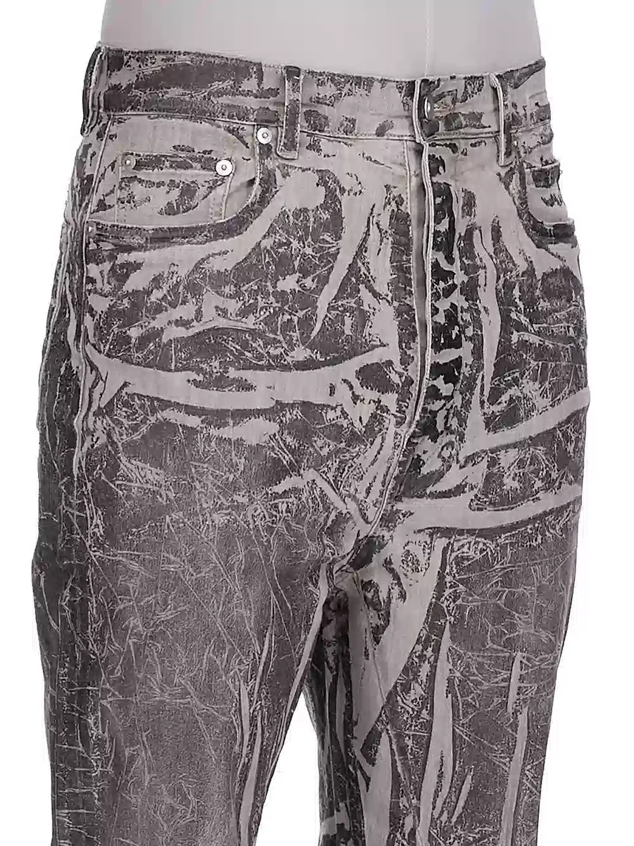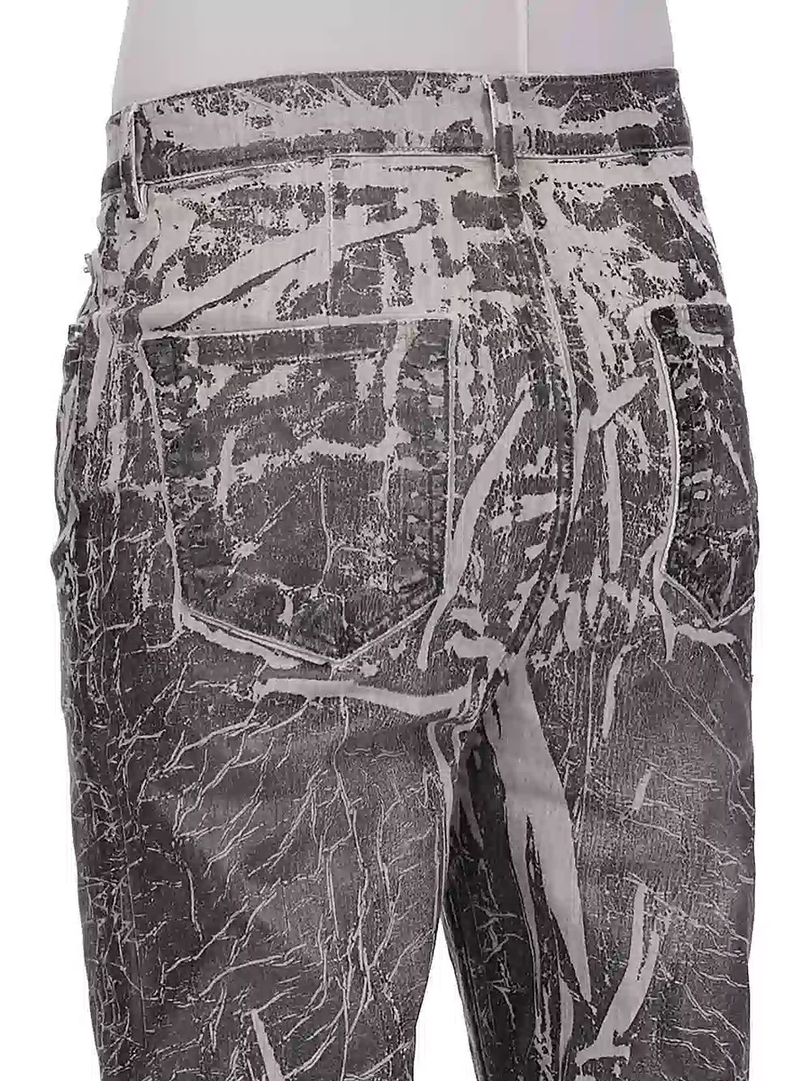 DENNA LÄTTVIKTIG, TÄTTAD FOIL DENIM ÄR TILLVERKAD PÅ EN 283 g SVART OCH NATURLIG STRETCH DENIM. DET FÄRDIGA PLAGGET BLEKAS TILL EN SMUTSIGA PÄRLEFÄRG, ETT SVART FOLIEÖVERLÄGG APPLICERAS SEDAN OCH SLUTLIGEN TVÄTTAS PLAGGET FÖR ATT UPPNÅ DET OREGELBUNDNA UTSEENDE.