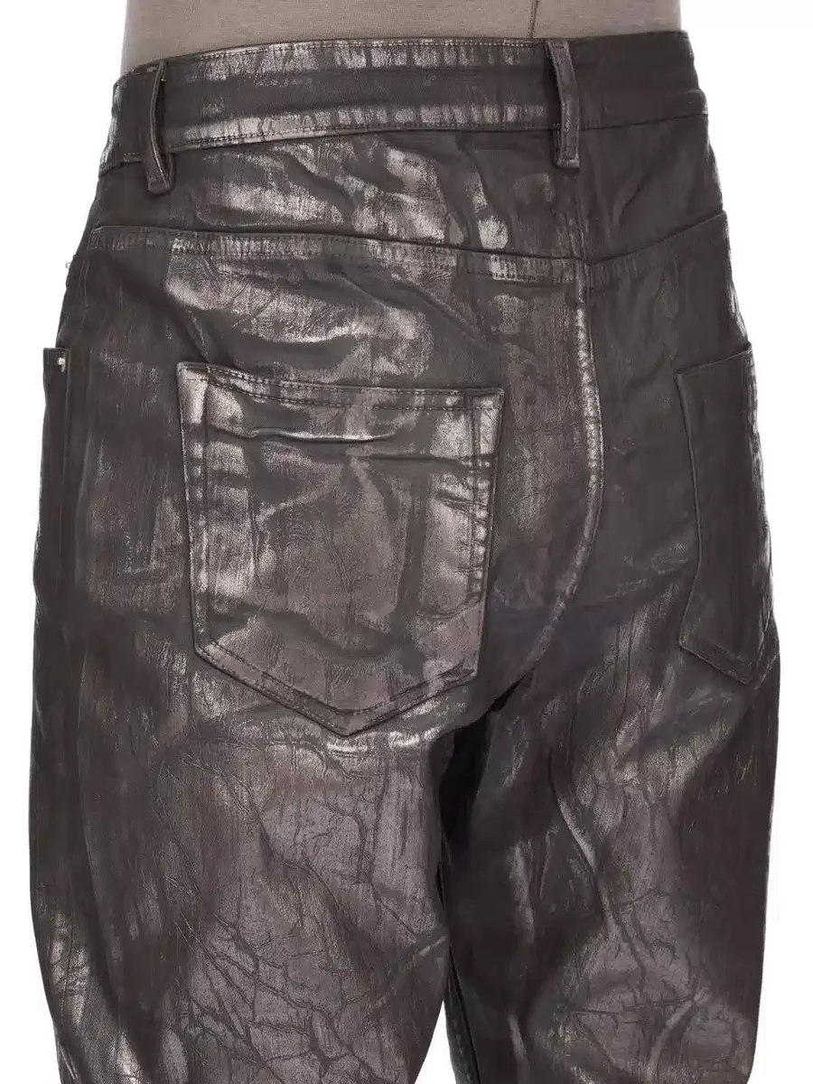 DENNA LÄTTA BRONS MEGACRUST-DENIM ÄR TILLVERKAD PÅ EN 283 g SVART OCH NATURLIG STRETCHDENIM. DET FÄRDIGA PLAGGET ÄR ÖVERFÄRGAT MED MÖRKT STAV OCH BEHANDLAS SEDAN MED LAGER AV BRONSFÄRGAD FOLI SOM PRESSAS PÅ FÖR HAND.