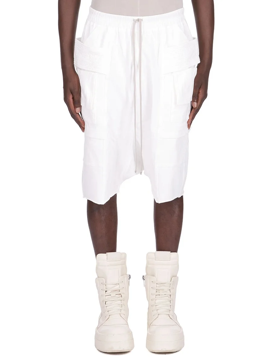 DESSA CREATCH CARGO PODS GÅR NEDÅÅN KNÄEN, MED EN LÄNGD GREN OCH BRED MITTPANEL. DE HAR EN ELASTISERAD MIDJA MED DRAGSNÖRNING OCH SYDD GYLF. DE HAR LAGERFÖRDE FRAMFICKOR MED SIDOREMMAR MED TYPISTYGA SÖMNINGAR OCH TVÅ FICKOR MED KLAFFATTNINGAR OCH KANTSÖMNINGAR.