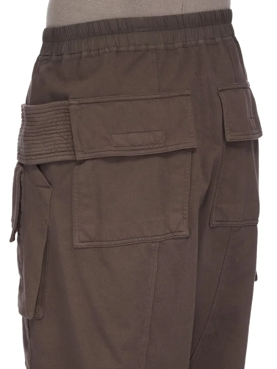 DESSA CREATCH CARGO PODS GÅR NEDAN KNÄEN, MED EN LÄNGD GREN OCH BRED MITTPANEL. DE HAR EN ELASTISERAD MIDJA MED DRAGSNÖRNING OCH SYDD GYLF. DE HAR LAGERFÖRDE FRAMFICKOR MED SIDOREMMAR MED TYPISTYGA SÖMNINGAR OCH TVÅ FICKOR MED KLAFFATTNINGAR OCH KANTSÖMNINGAR.