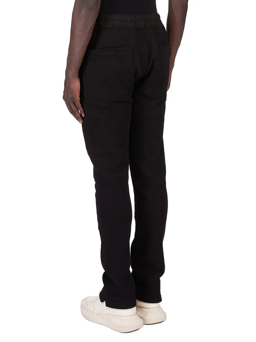 DESSA BERLIN DRAGSNÖRBYXOR ÄR FULL LÅNGA. DE HAR EN ELASTISERAD MIDJA MED DRAGSNÖR OCH SYDD GYLF. DE HAR SIDFICKOR FRAM, PATCHFICKOR BAK MED KLAFFA OCH KOPPSÖMNINGAR SAMT SMÅ SLISOR I YTTRE VÄGGSÖMMEN.