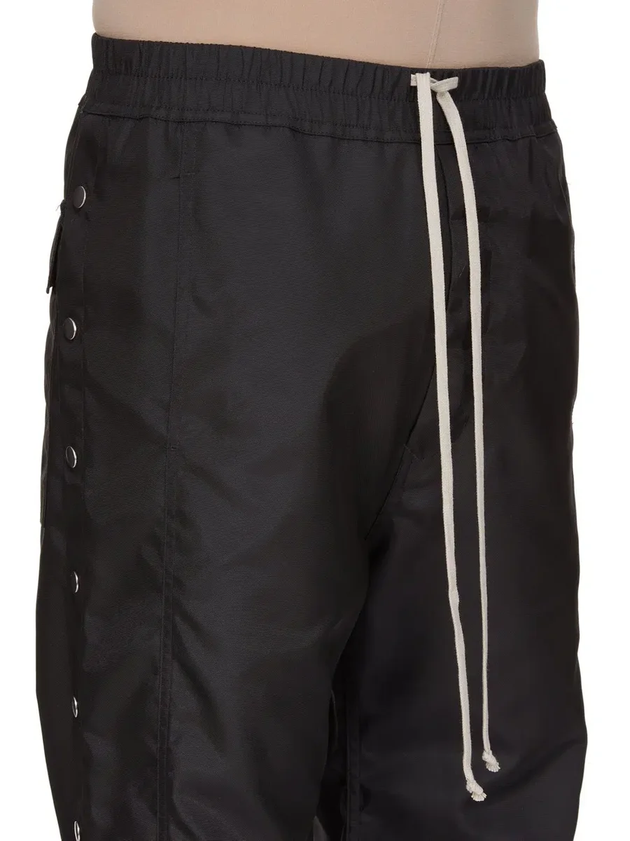 DESSA PUSHERS ÄR GOLFLÅNGA MED VID BEN OCH LÄTT NEDSÄNKT GREN. DE HAR RESÅR I MIDJAN MED DRAGSNÖRNING, FICKOR PÅ SIDORNA OCH FYRKANTIGA BAKSIDOR MED KANTSÖMNING. DE HAR SYNLIGA KNÄPP SOM LÖPER NER LÄNGD PÅ YTTRE BENET, SÅ HÄR KAN DE KNÄPPAS UT OCH BÄRAS ÖPPNA.