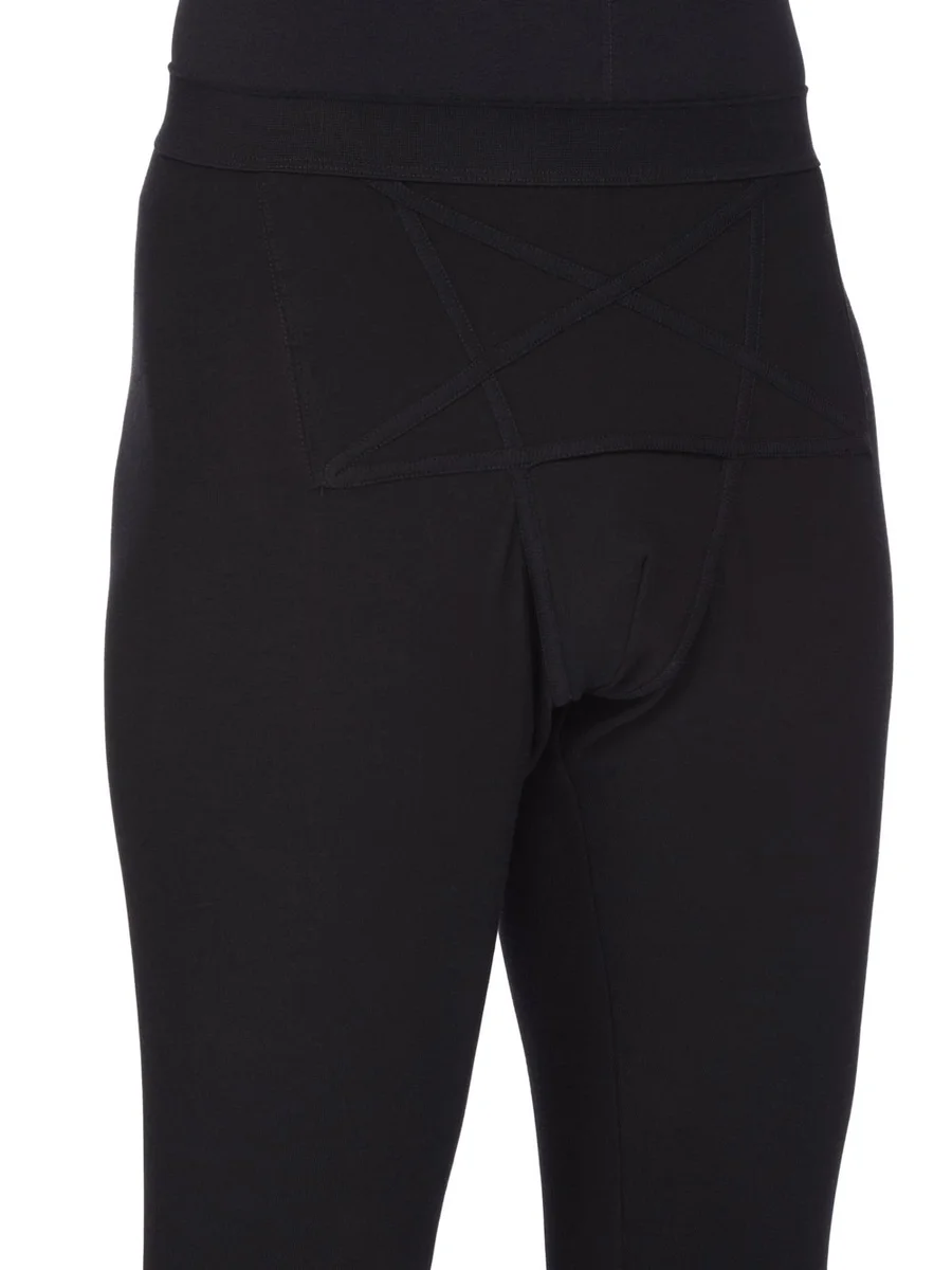 DENNA TERMOBILT BOTTOM ÄR ANKLELÅNG. DEN HAR EN ELASTISERAD MIDJA, ANKLÄNGDA MUDDAR OCH PENTAGRAMSÖMNINGAR FRAM.