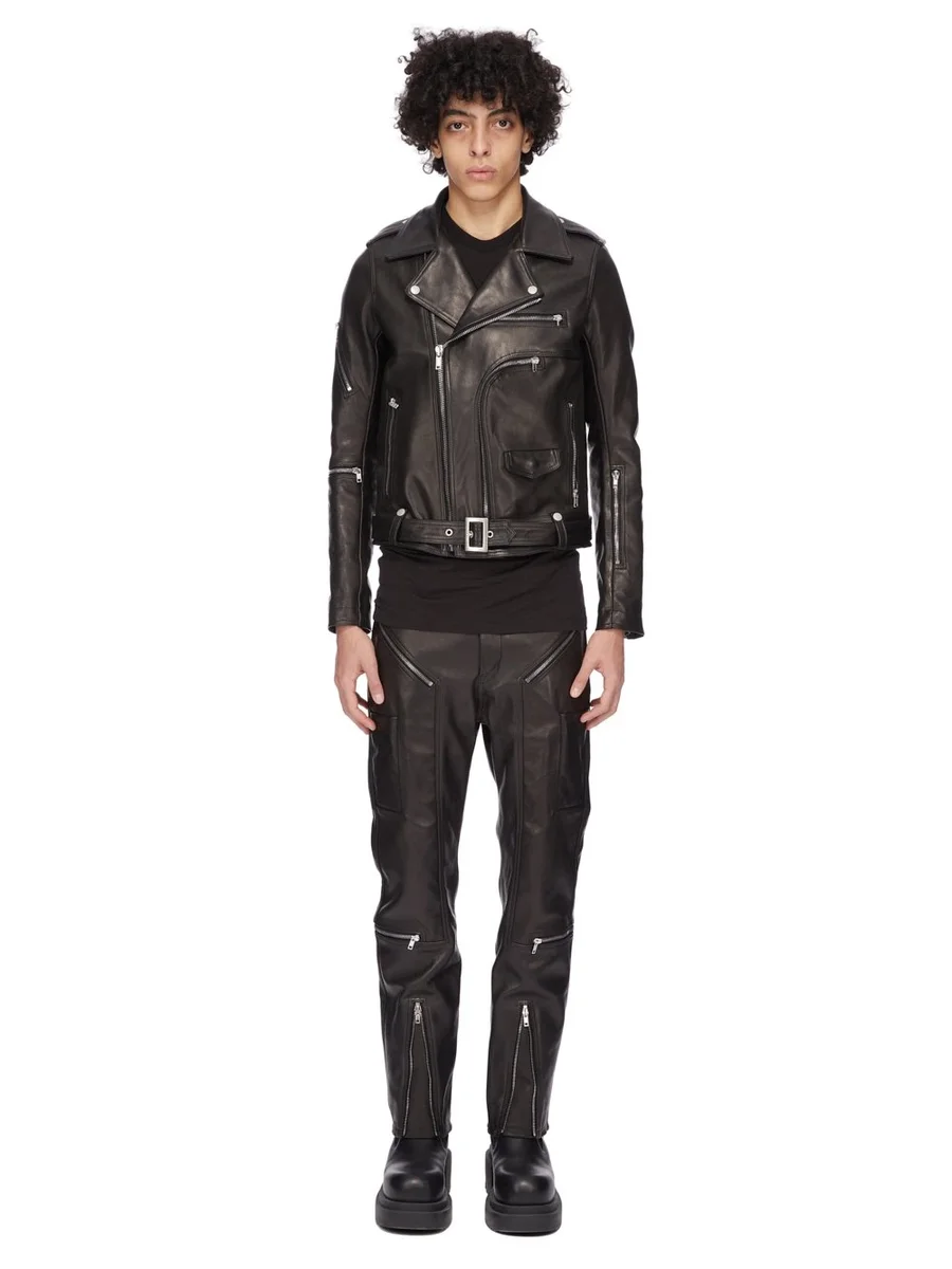 RICK OWENS FW25 CONCORDIANS RUNWAY HEADON JEANS I SVART HYBRID HORSE-LÄDER