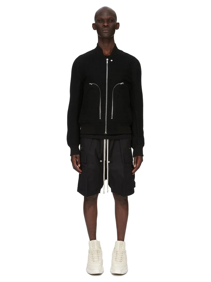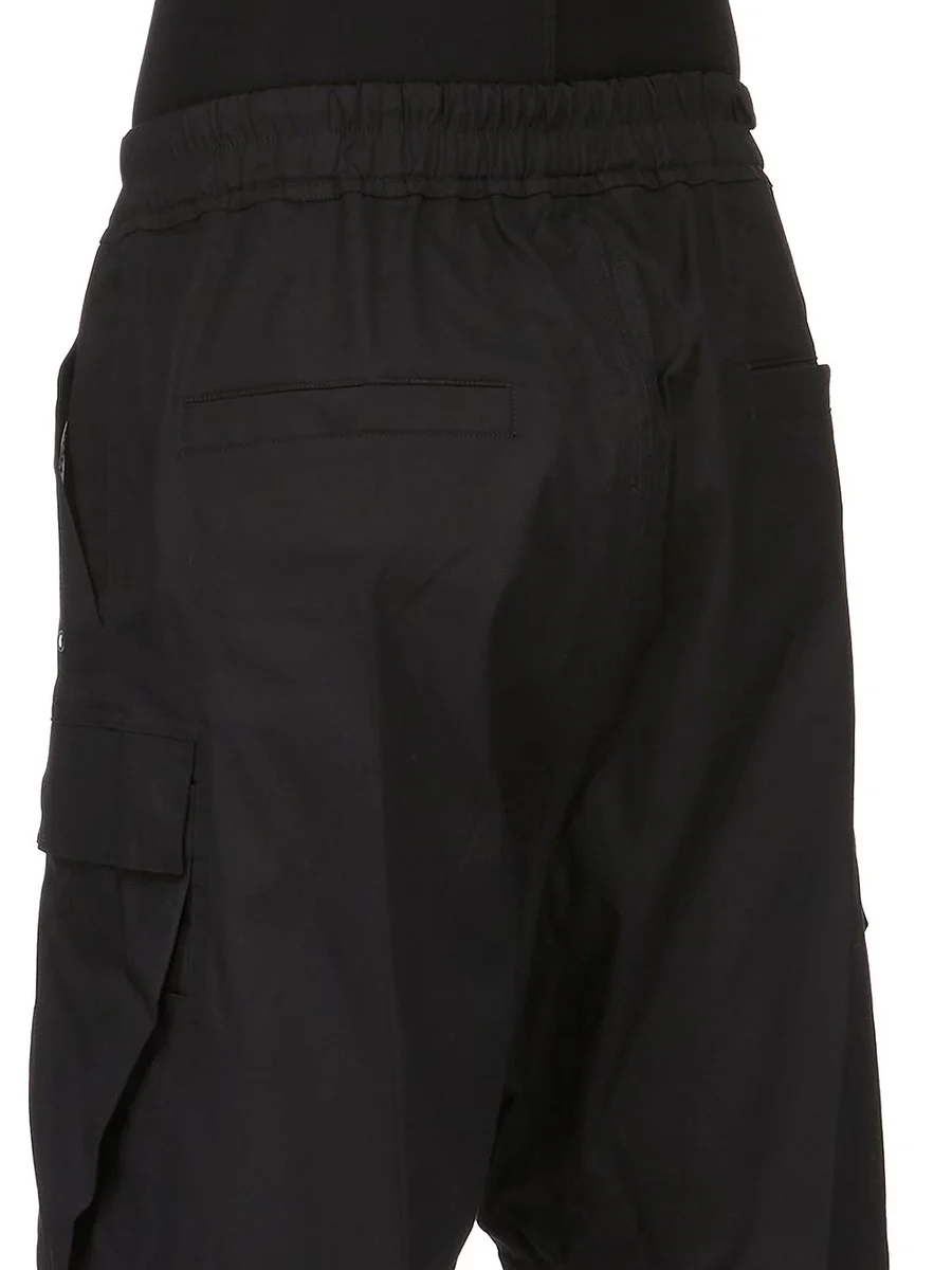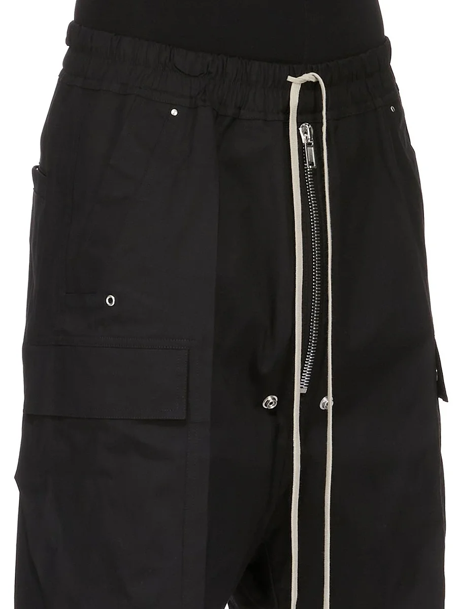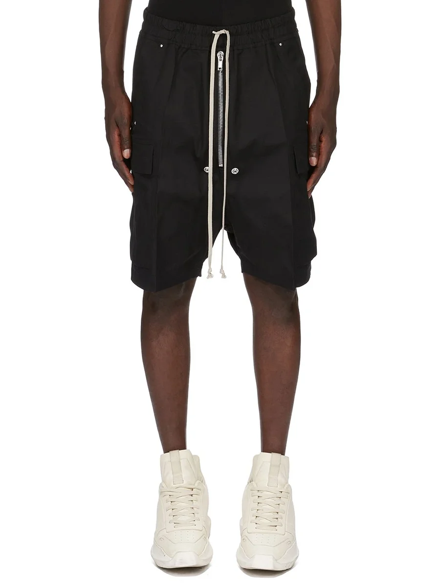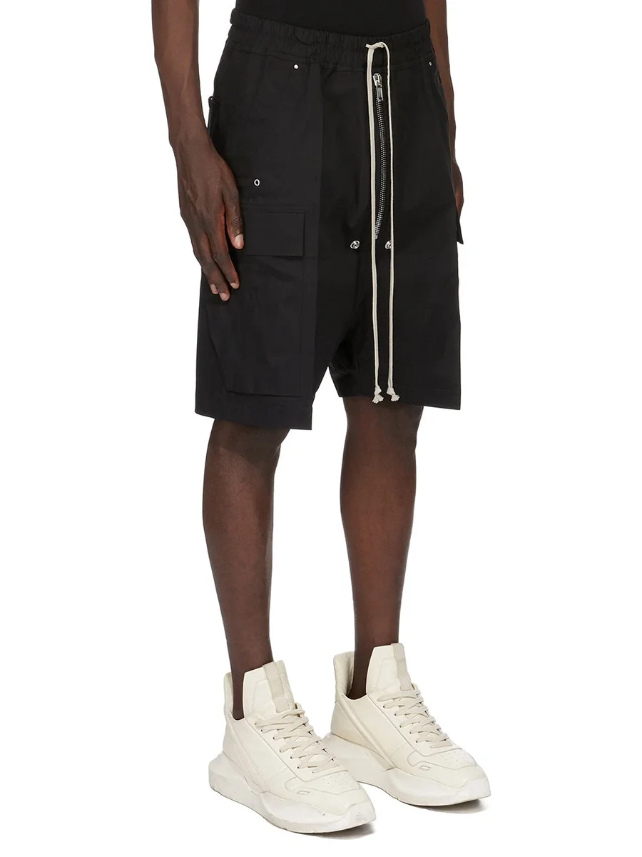 RICK OWENS FW25 CONCORDIANS CARGOBELA SHORTS I SVART, KRAFTIGT BOMULLSPOPLIN