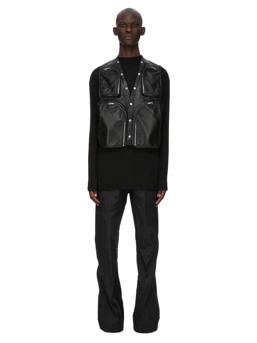 DESSA VIDDA BELA-BYXOR ÄR LÅNGA MED LÅG GREN OCH VID BEN. DE HAR RESÅR I MIDJAN MED DRAGSKNÄPP OCH EN SYND BELA-DRAGKEDJA I MITTEN MED TVÅ KNÄPPDETALJER NEDST. DE HAR SIDOPASIDEFICKOR MED NIT- OCH ÖGLADESNYCKEL OCH BAKSIDFICKOR MED KLAPPAR OCH KNÄPPNING.