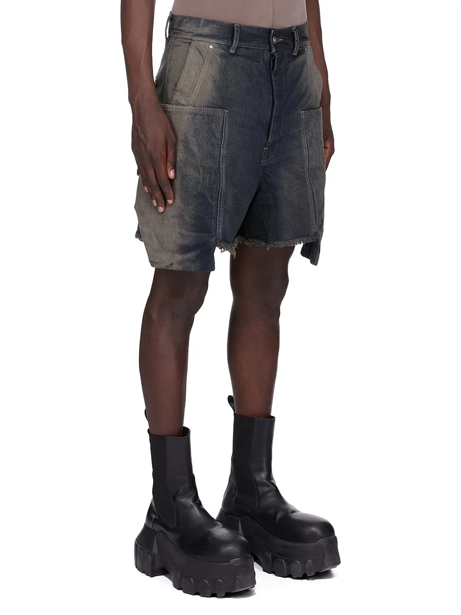 RICK OWENS FW25 CONCORDIANS STEFAN CARGO SHORTS I 14OZ DARKDUST DEGRADE SLUB DENIM