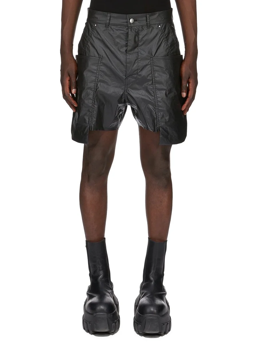 RICK OWENS FW25 CONCORDIANS STEFAN CARGO SHORTS I SVART POPLIN