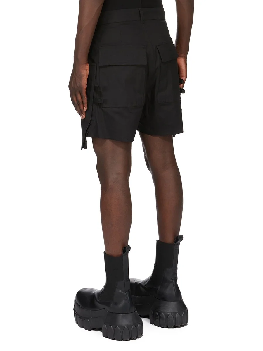 RICK OWENS FW25 CONCORDIANS STEFAN CARGO SHORTS I SVART, KRAFTIGT BOMULLSPOPLIN