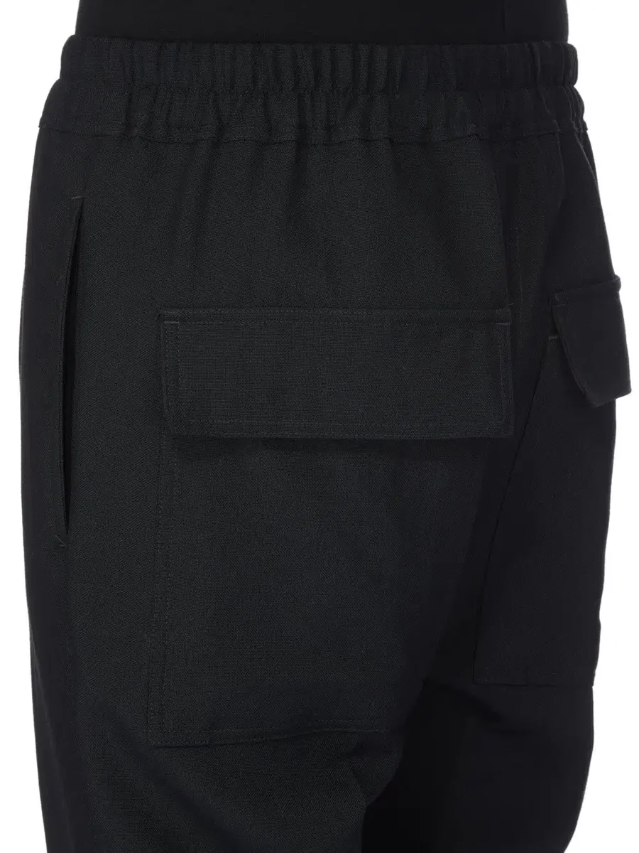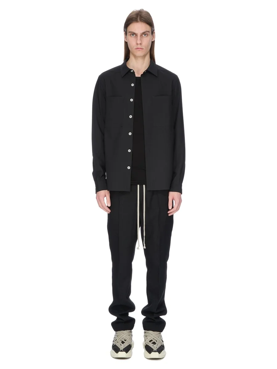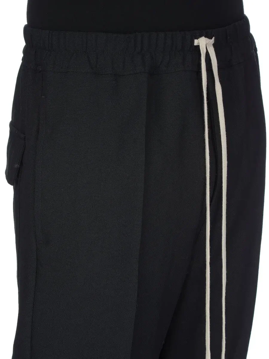 RICK OWENS FW25 CONCORDIANS SLIM LÅNGBYXA MED DRAGSNODD I SVART GRAIN DE POUDRE