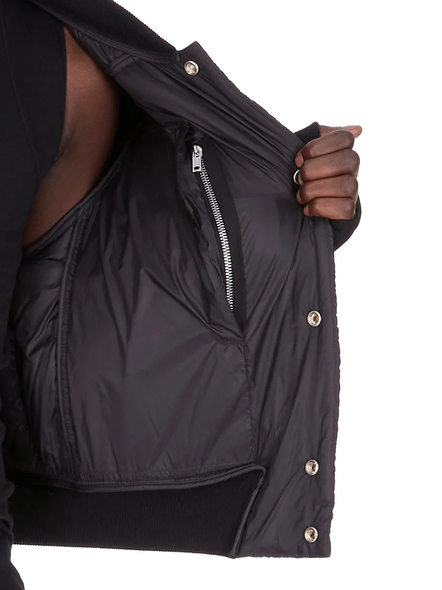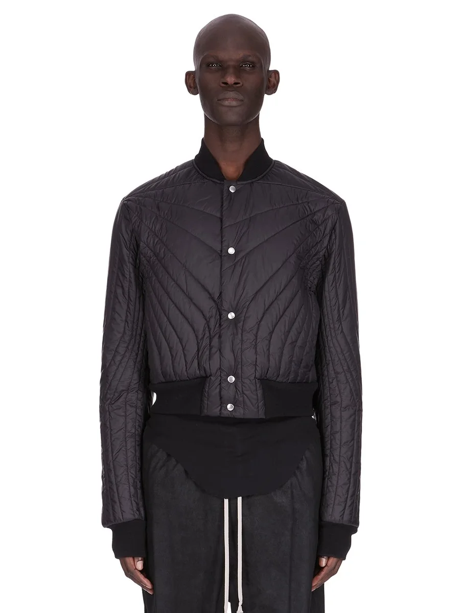 RICK OWENS FW25 CONCORDIANS QUILTAD FLIGHT JKT I SVART NYLON.
