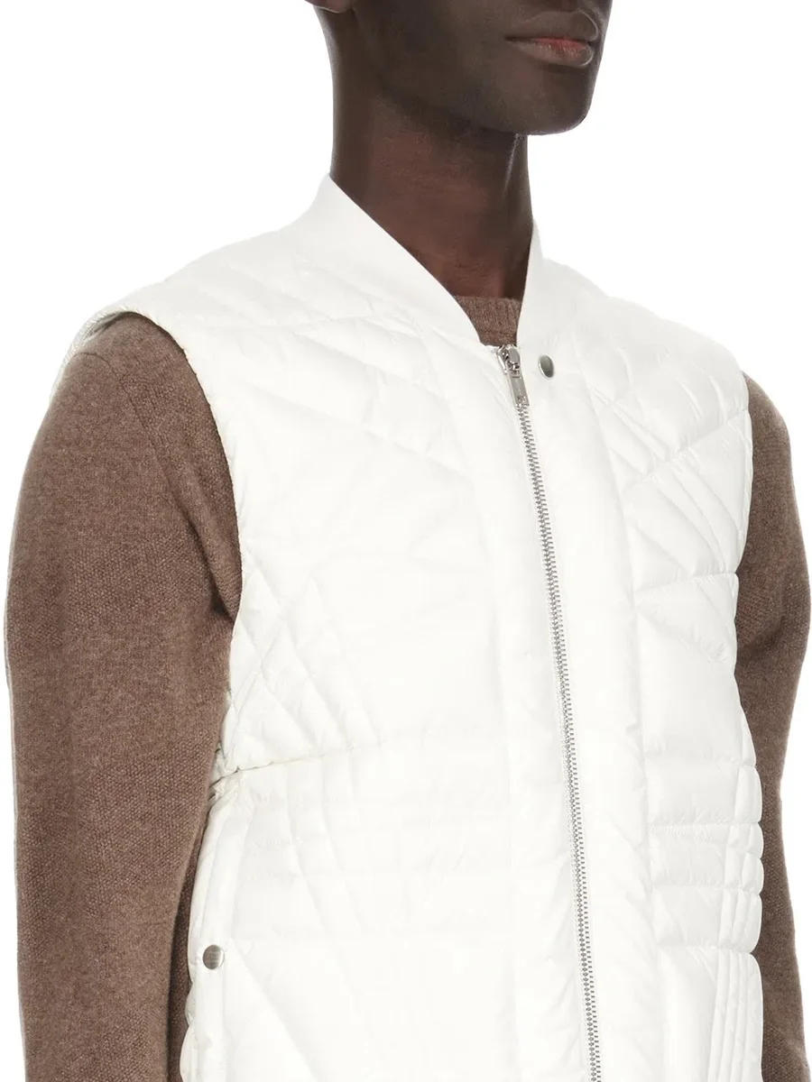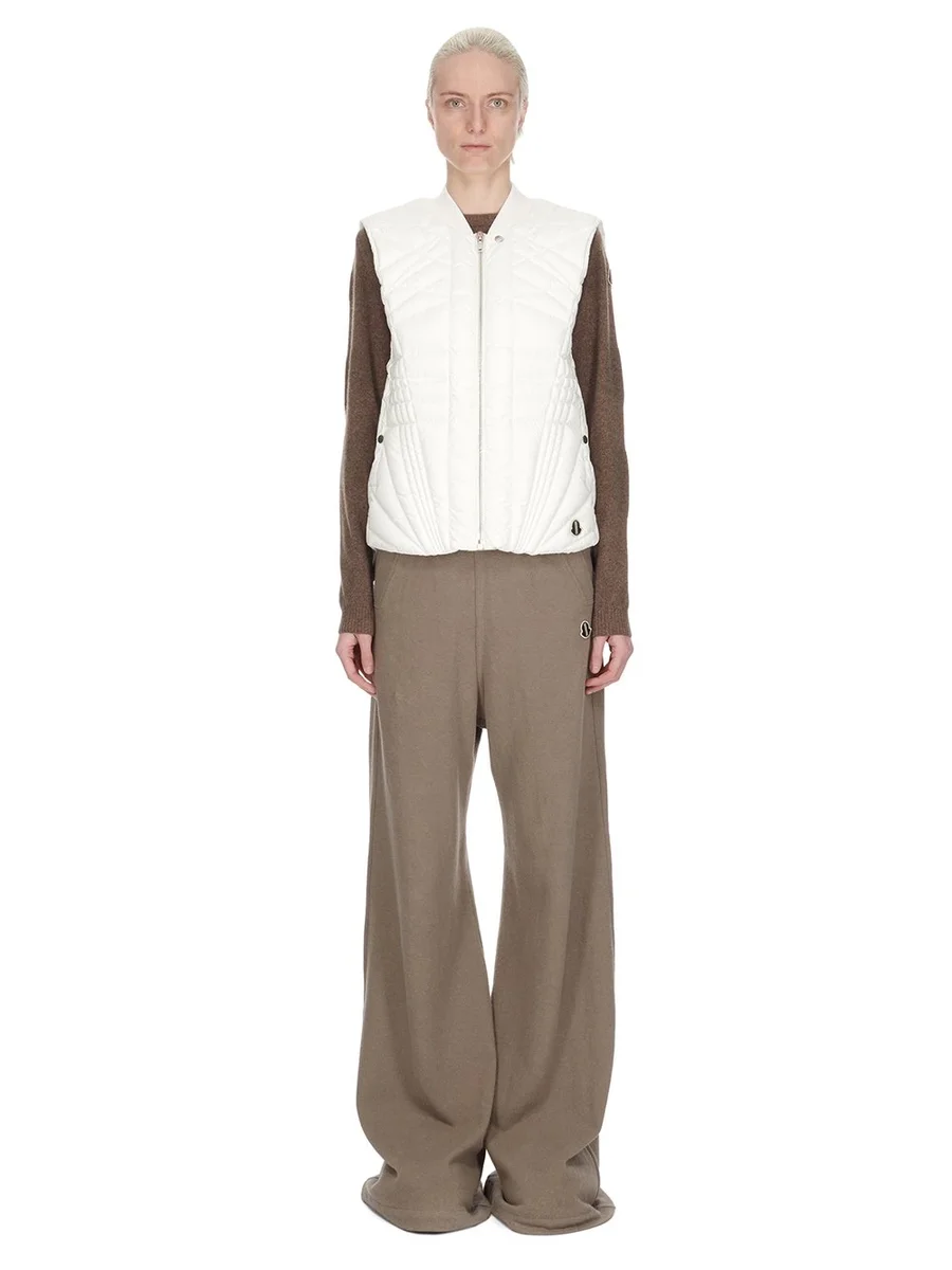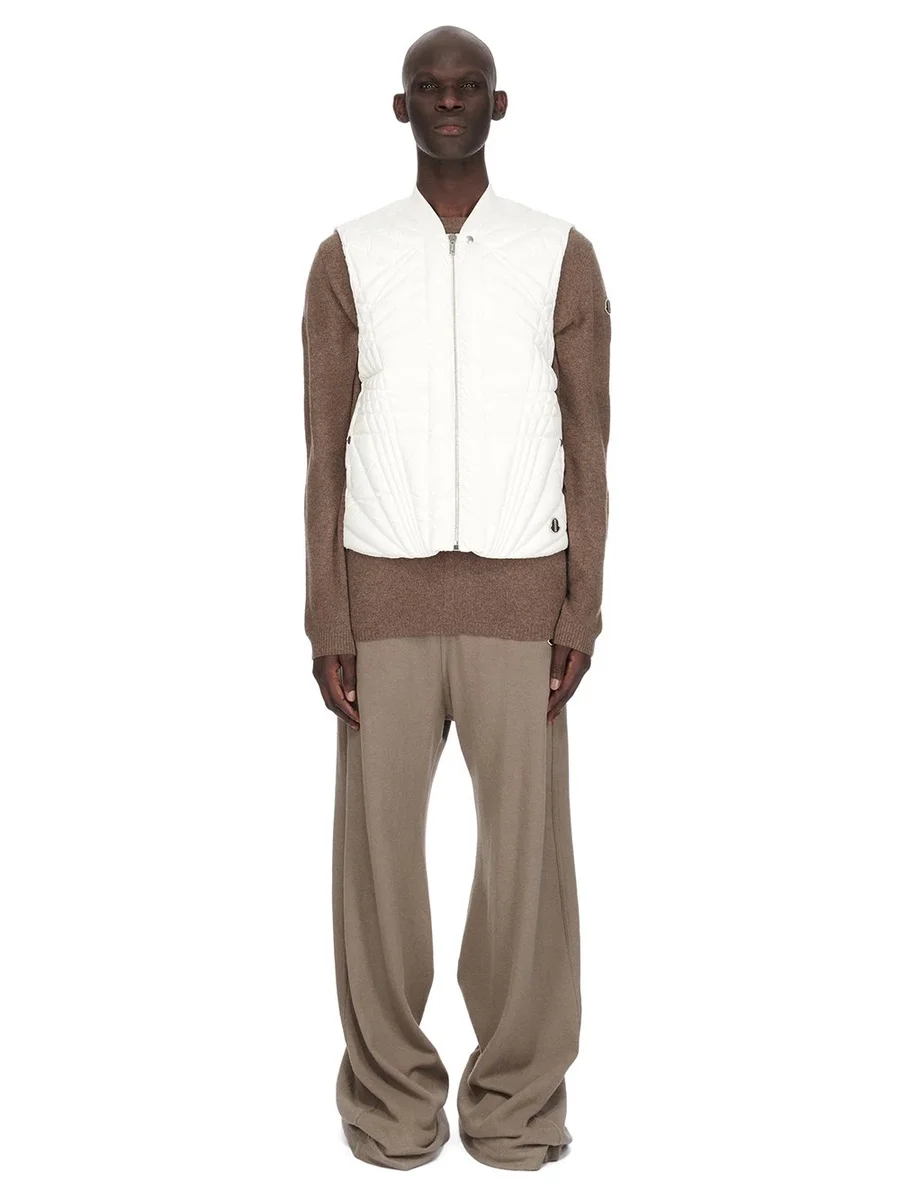 MONCLER +RICK OWENS FW24 MEGAPENTA FLIGHT VÄST I MILK RECYCLED LONGUE SAISON MED RADIANCE QUILTING