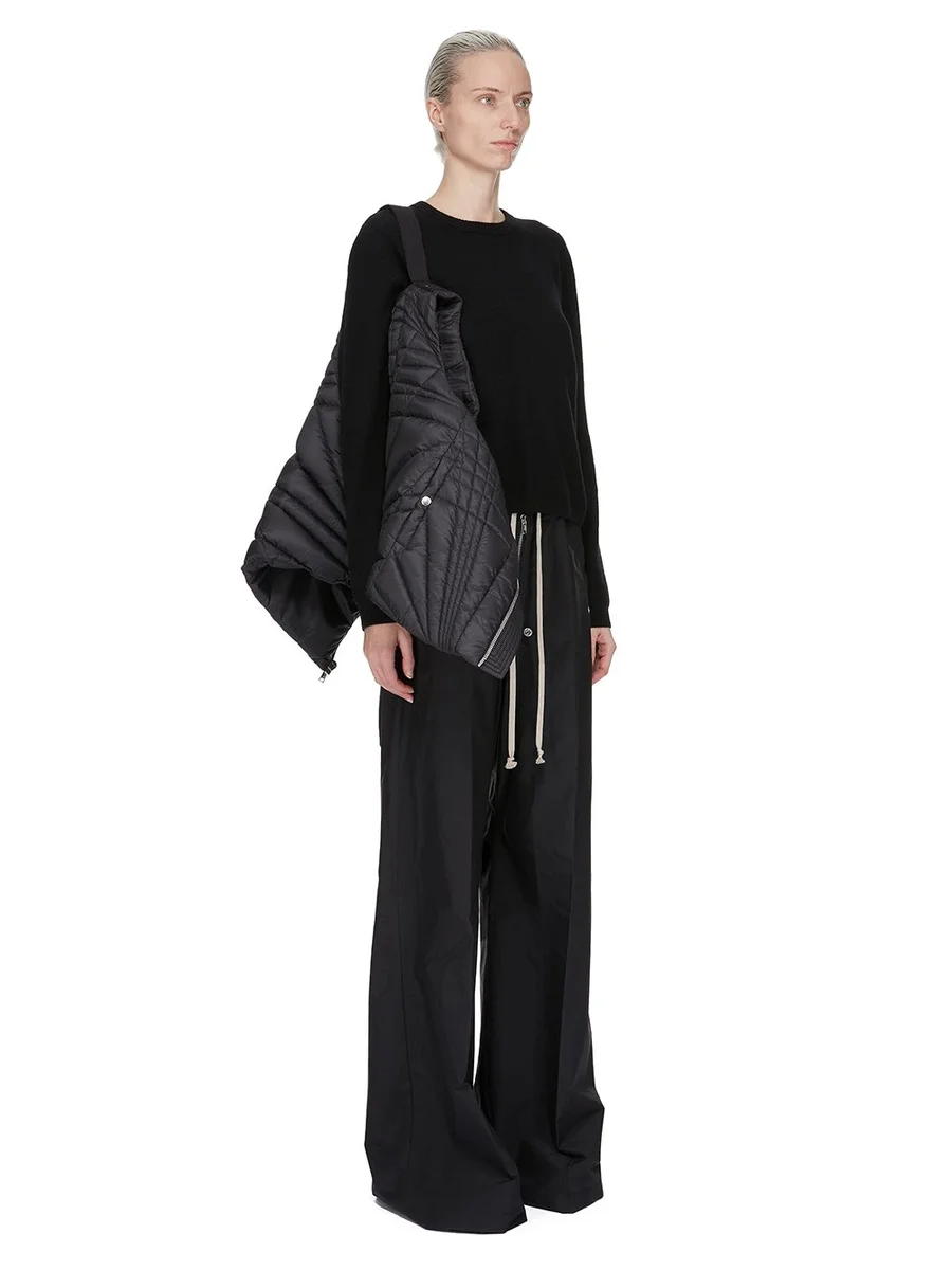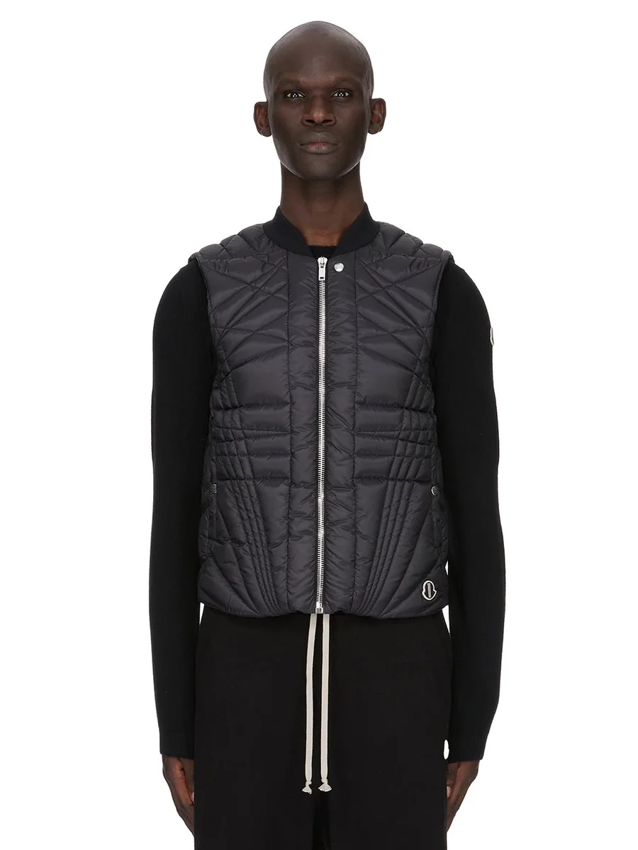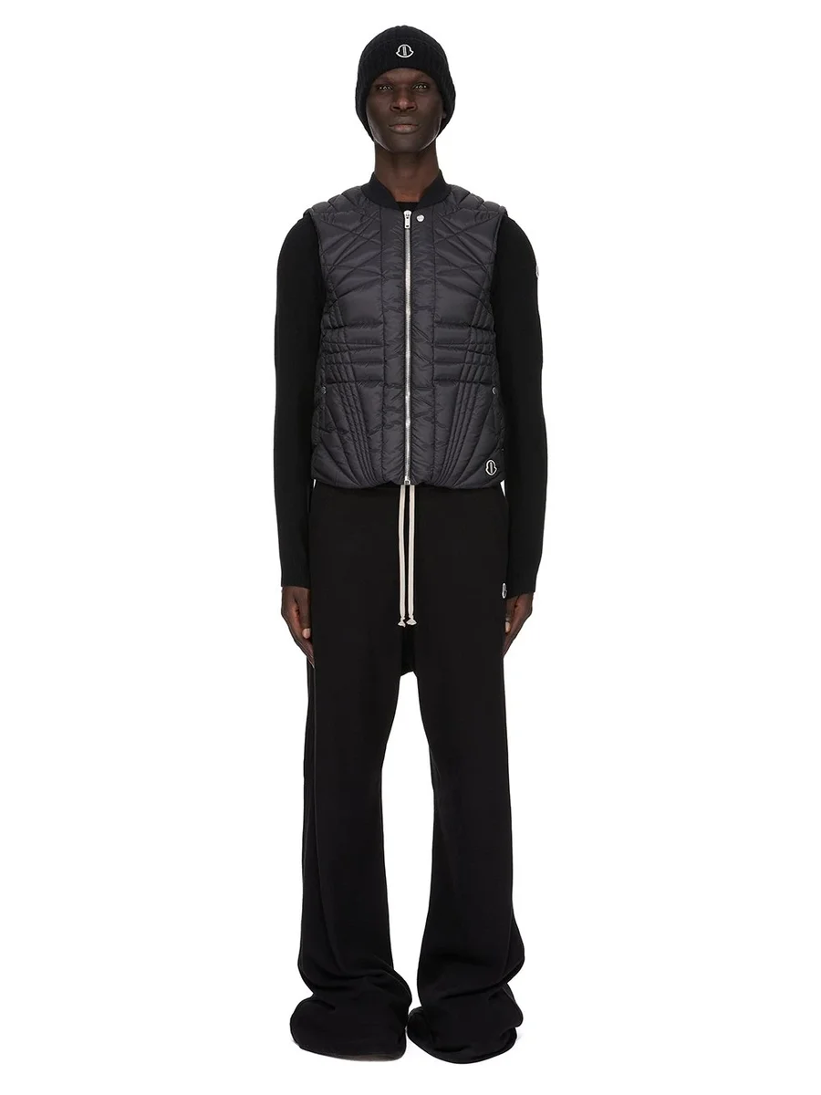 MONCLER +RICK OWENS FW24 MEGAPENTA FLYGVÄST I SVART ÅTERVUNNEN LONGUE SAISON MED RADIANCE QUILTING