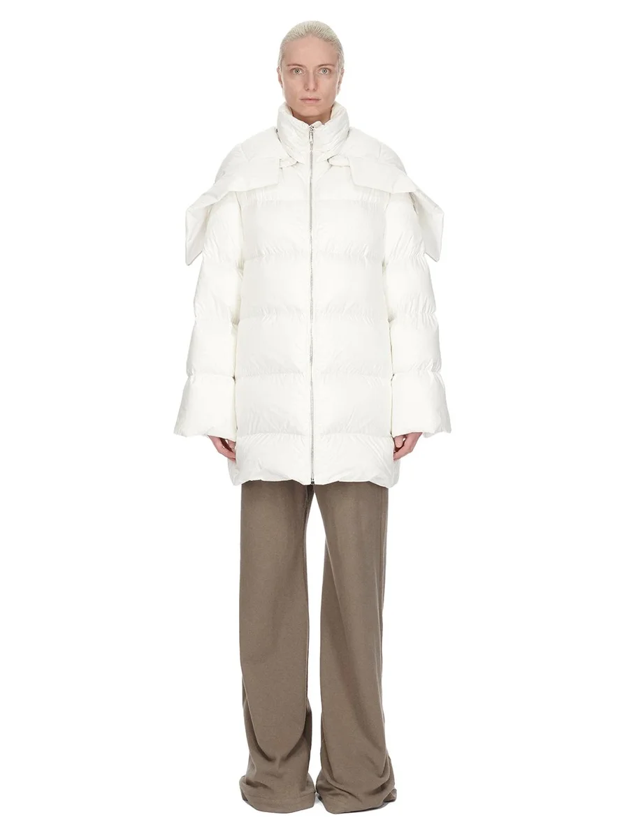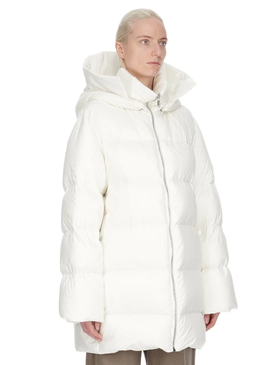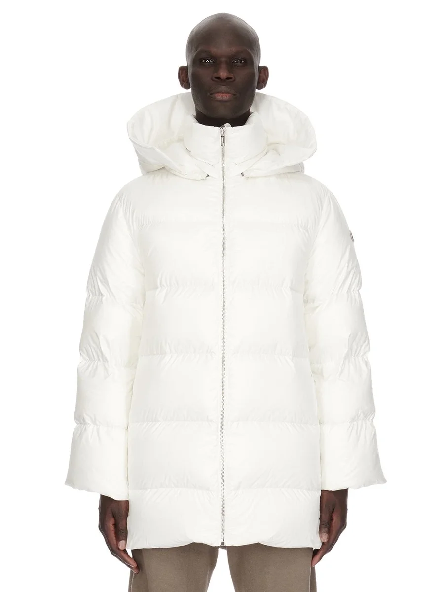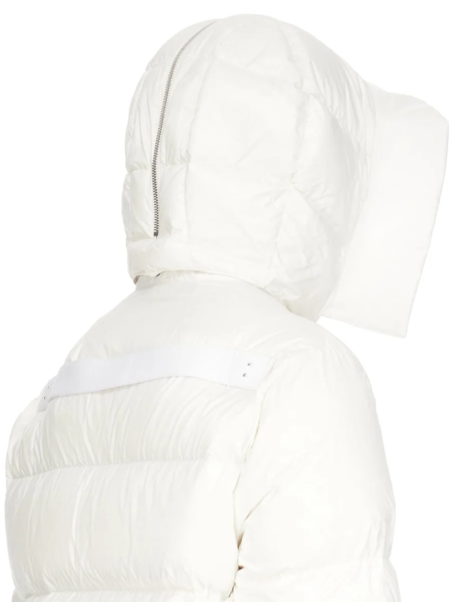MONCLER +RICK OWENS FW24 CYKLOPISK HUVA I MJÖLKÅL, ÅTERVUNNEN LONGUE SAISON