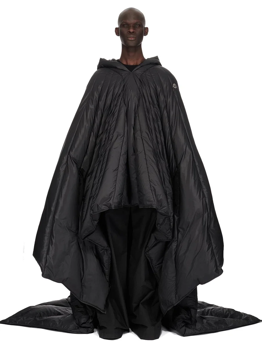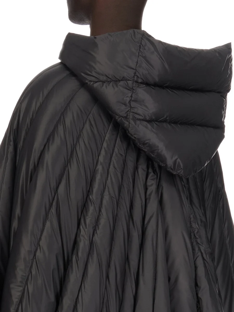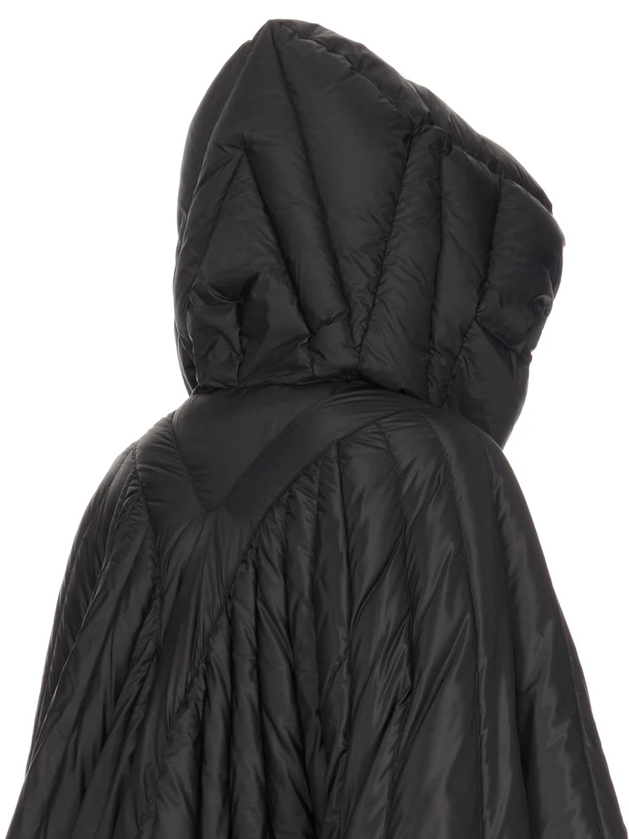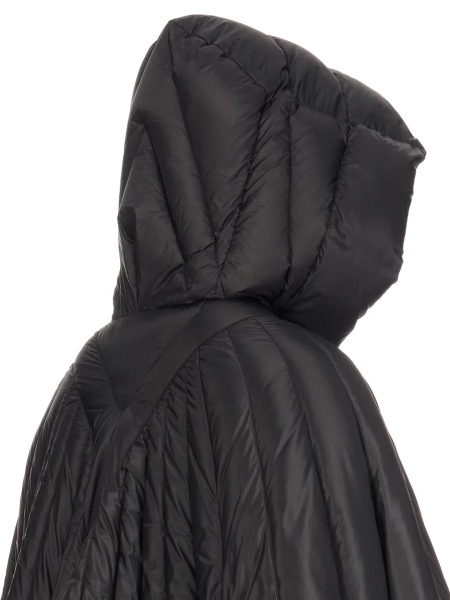 MONCLER +RICK OWENS FW24 RADIANCE-FILT MED HUVA I SVART ÅTERVUNNEN LONGUE SAISON MED RADIANCE-QUILTNING