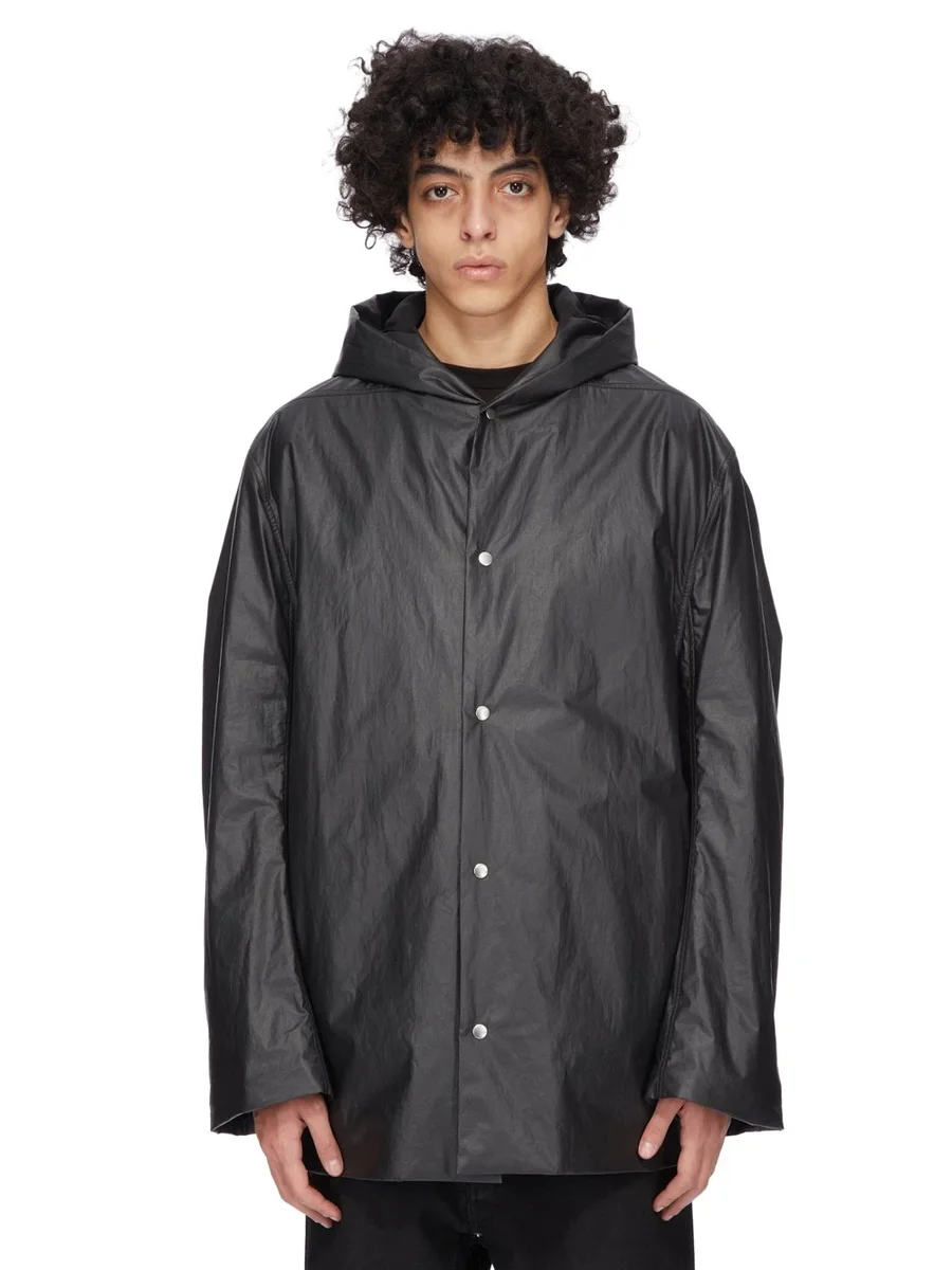 RICK OWENS FW25 CONCORDIANS CROPPED MAC I SVART POPLINMÖNSK