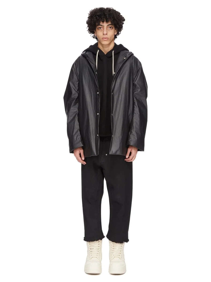 RICK OWENS FW25 CONCORDIANS CROPPED MAC I SVART POPLIN